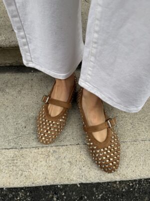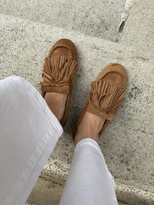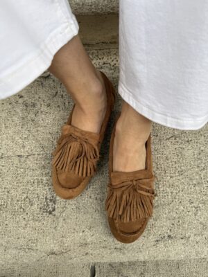 Mocassino in alcantara con frange e fiocchetto cuoio