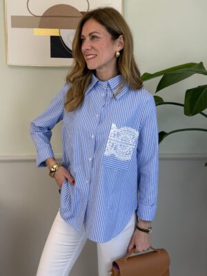 Camicia celeste gessata con pizzo posteriore SusyMix 514