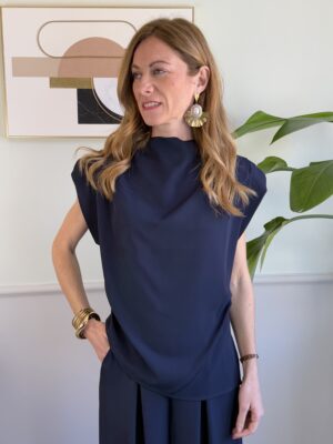 Pantalone a palazzo ampio con cavallo morbido, chiusura con zip sulla schiena.