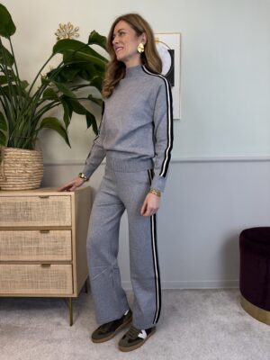 Set in maglia lupetto e pantaloni grigio banda panna/nero HaveOne94