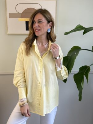 Camicia gialla dettaglio in pizzo bianco 92-4