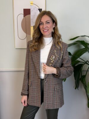 Maxi blazer scozzese con topolino patch SusyMix 199