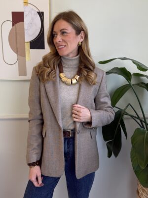 Giacca over scozzese verde con spille Susymix 40% lana 833