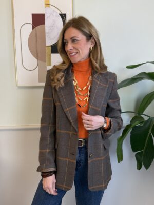 Blazer lungo castagna con righe arancio/verdi TensioneIn 35