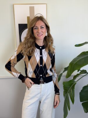 Rebecchina a rombi bottoni gioiello nero beige Susy Mix 78