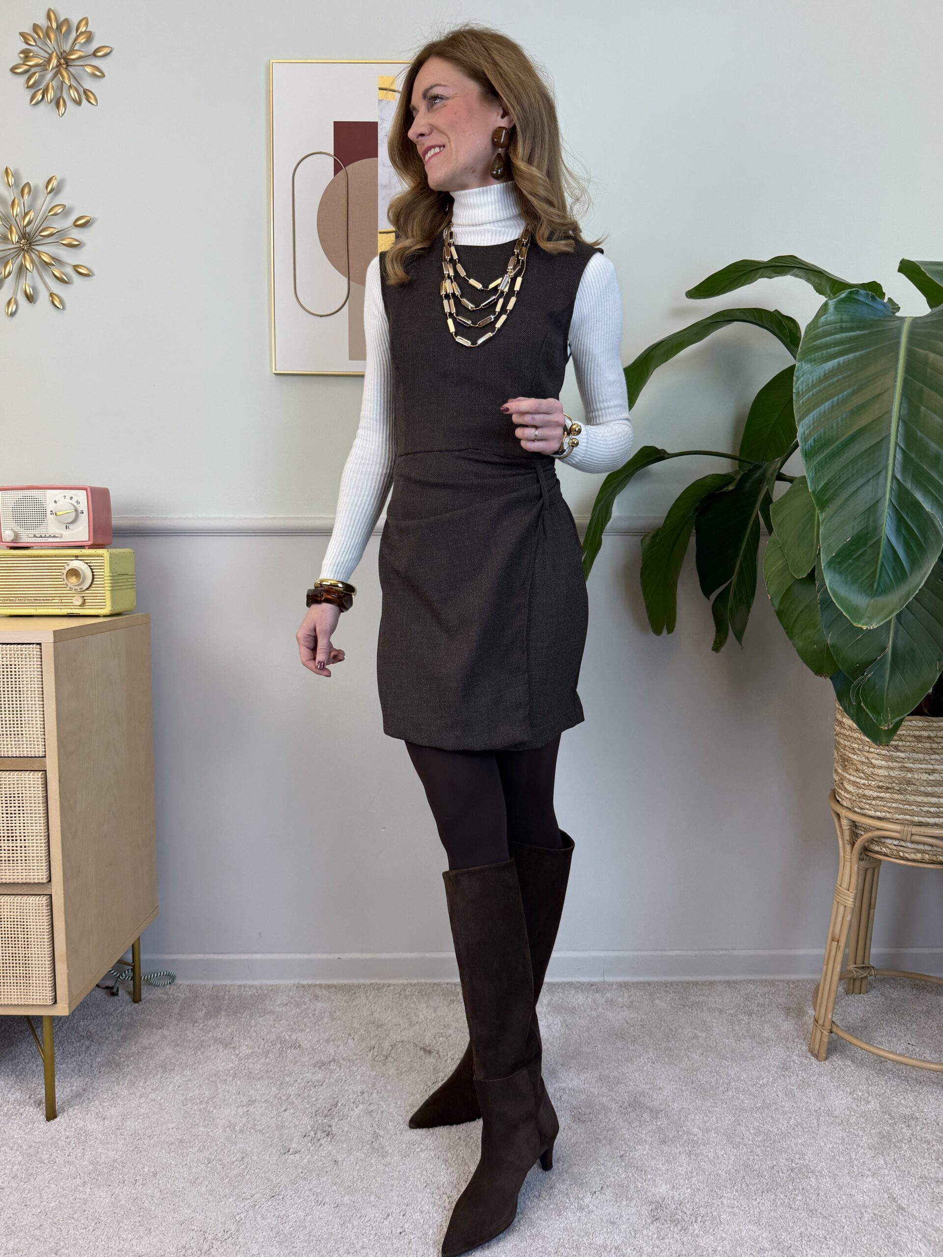 Abito tubino aderente, smanicato con gonna effetto portafoglio, fiocco sul retro e zip posteriore invisibile.