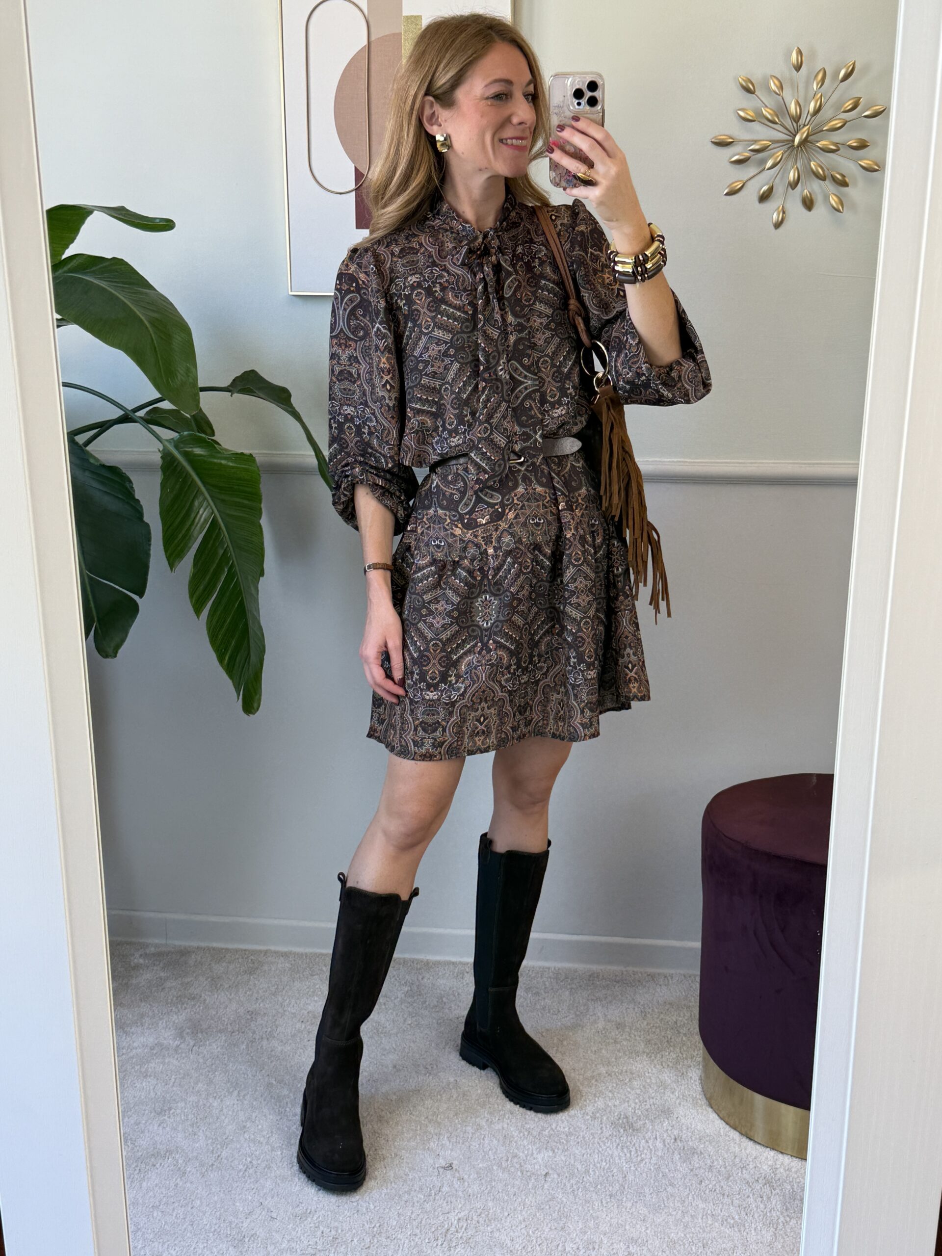 Puoi stringere il punto vita con la Cintura in pelle scamosciata con fibbia lucchetto come in foto.