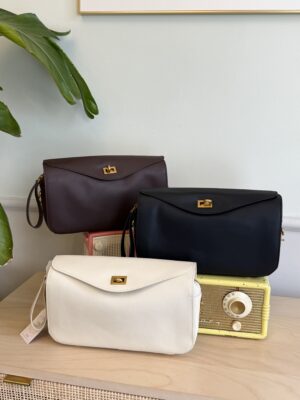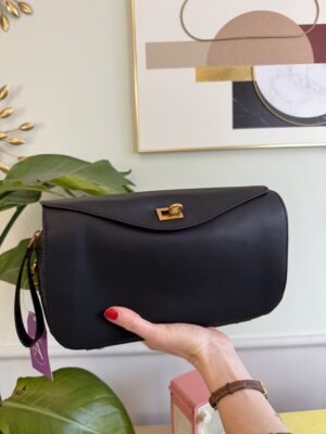 Chiusura a gancio esterna, corredata di tracolla e manico laterale.