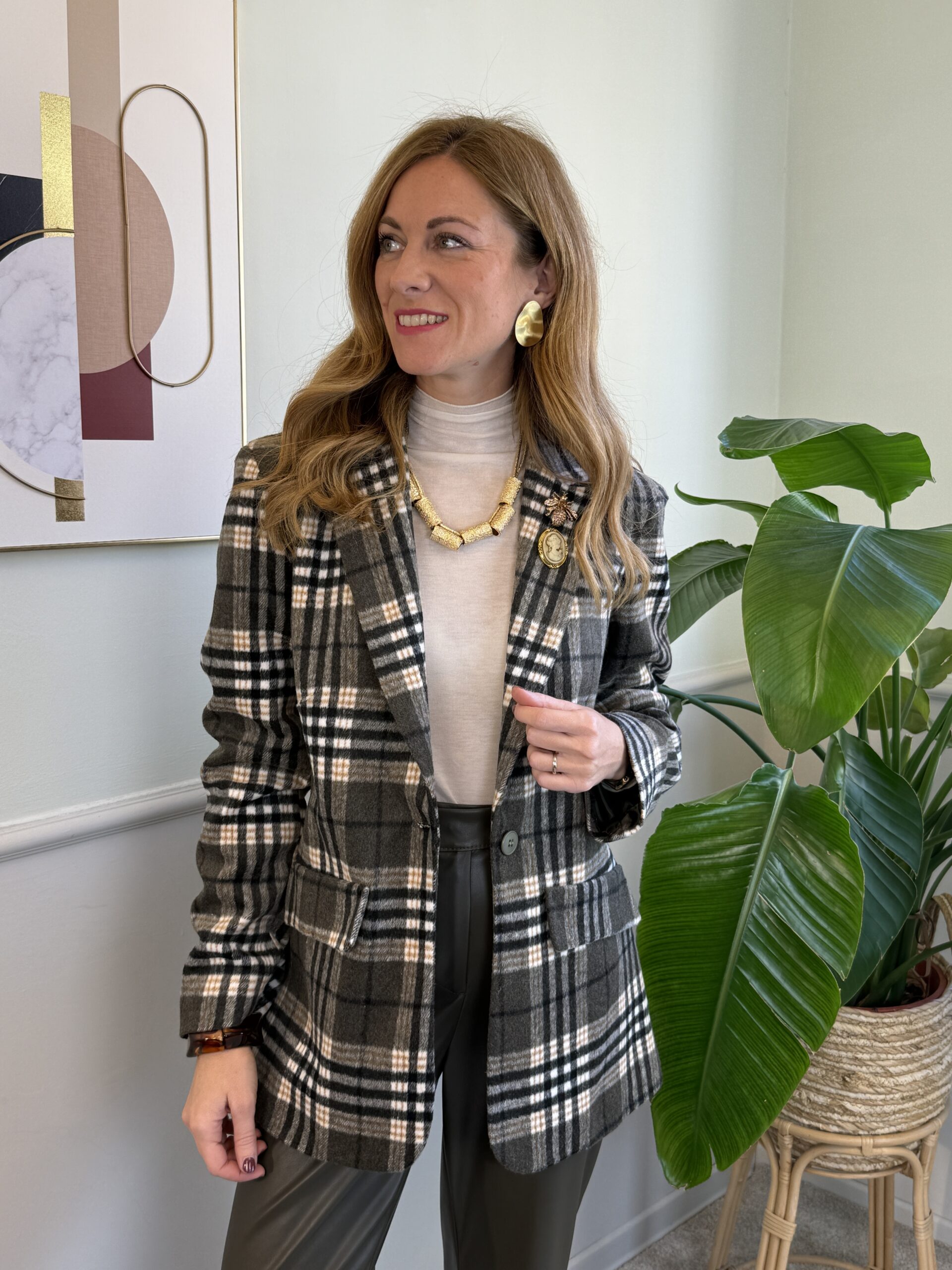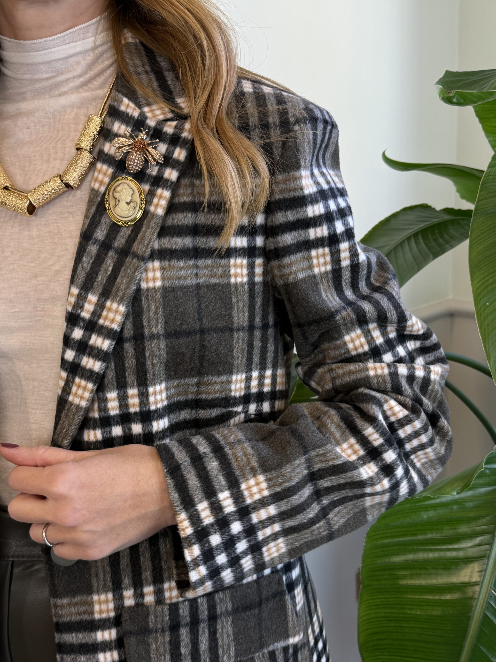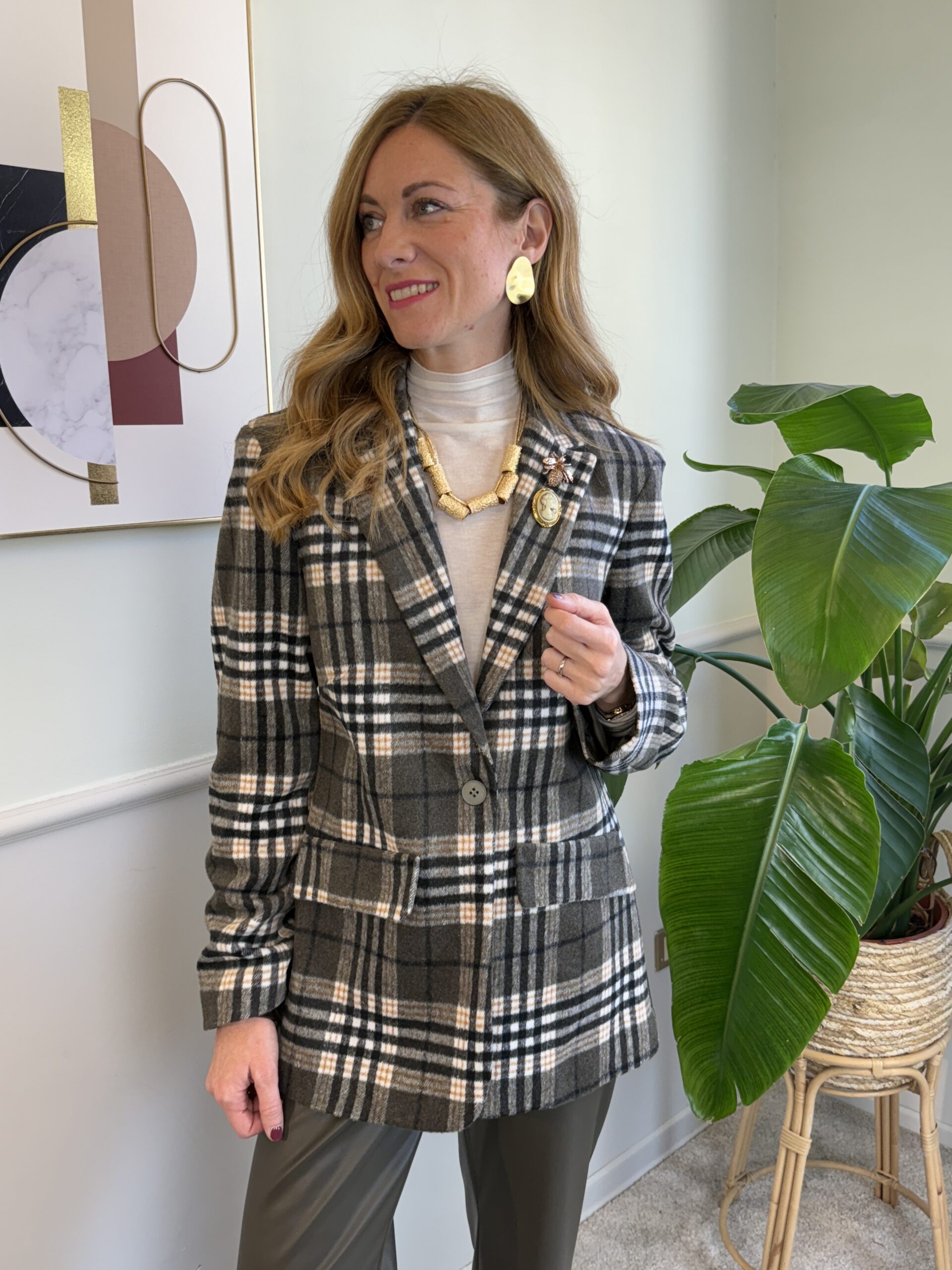 Blazer tartan kaki/ocra/fango Susy Mix 314