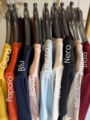 Tg S per 38/40, tg M per 40/42, tg L per 44, tg XL per 46.