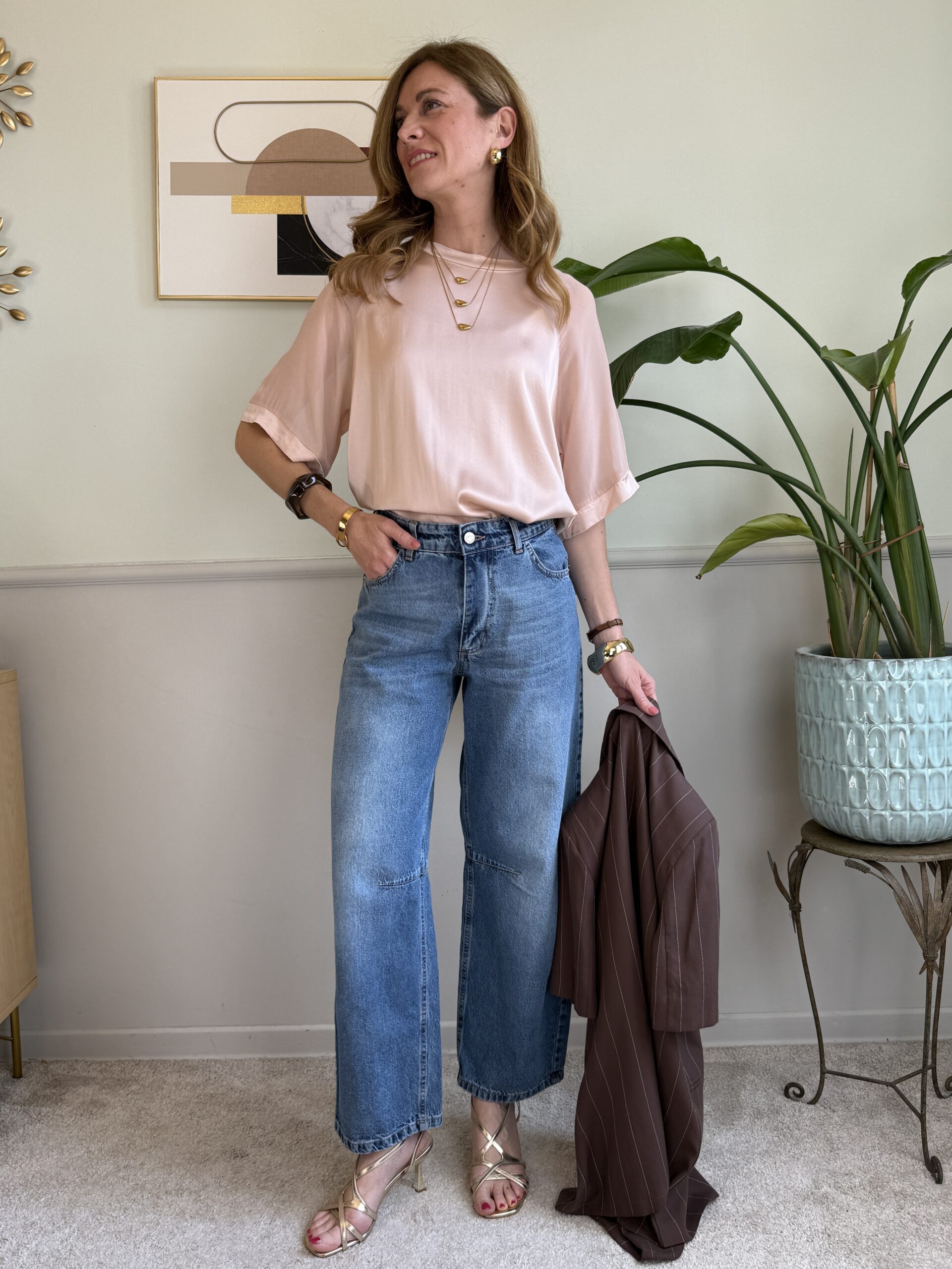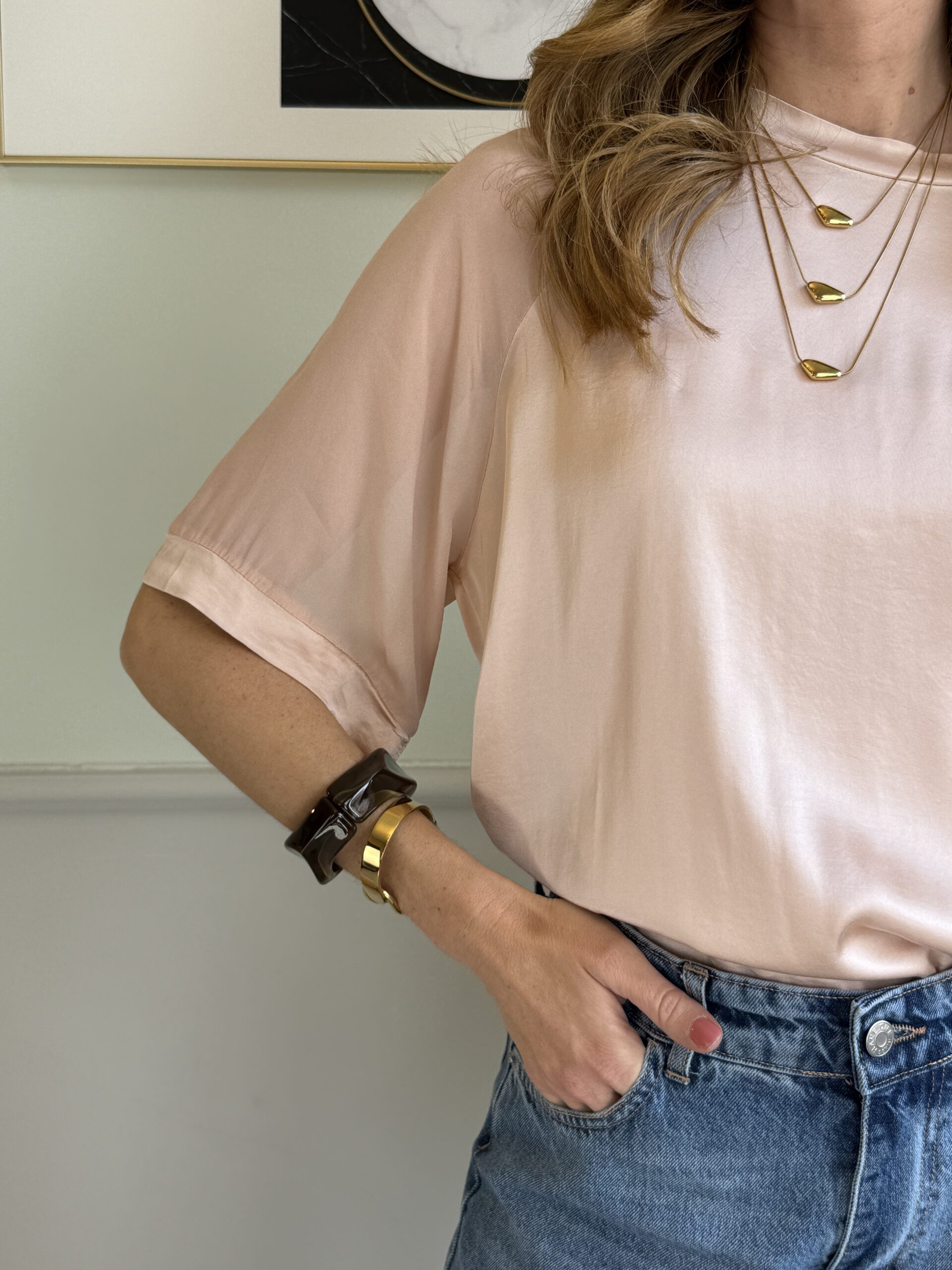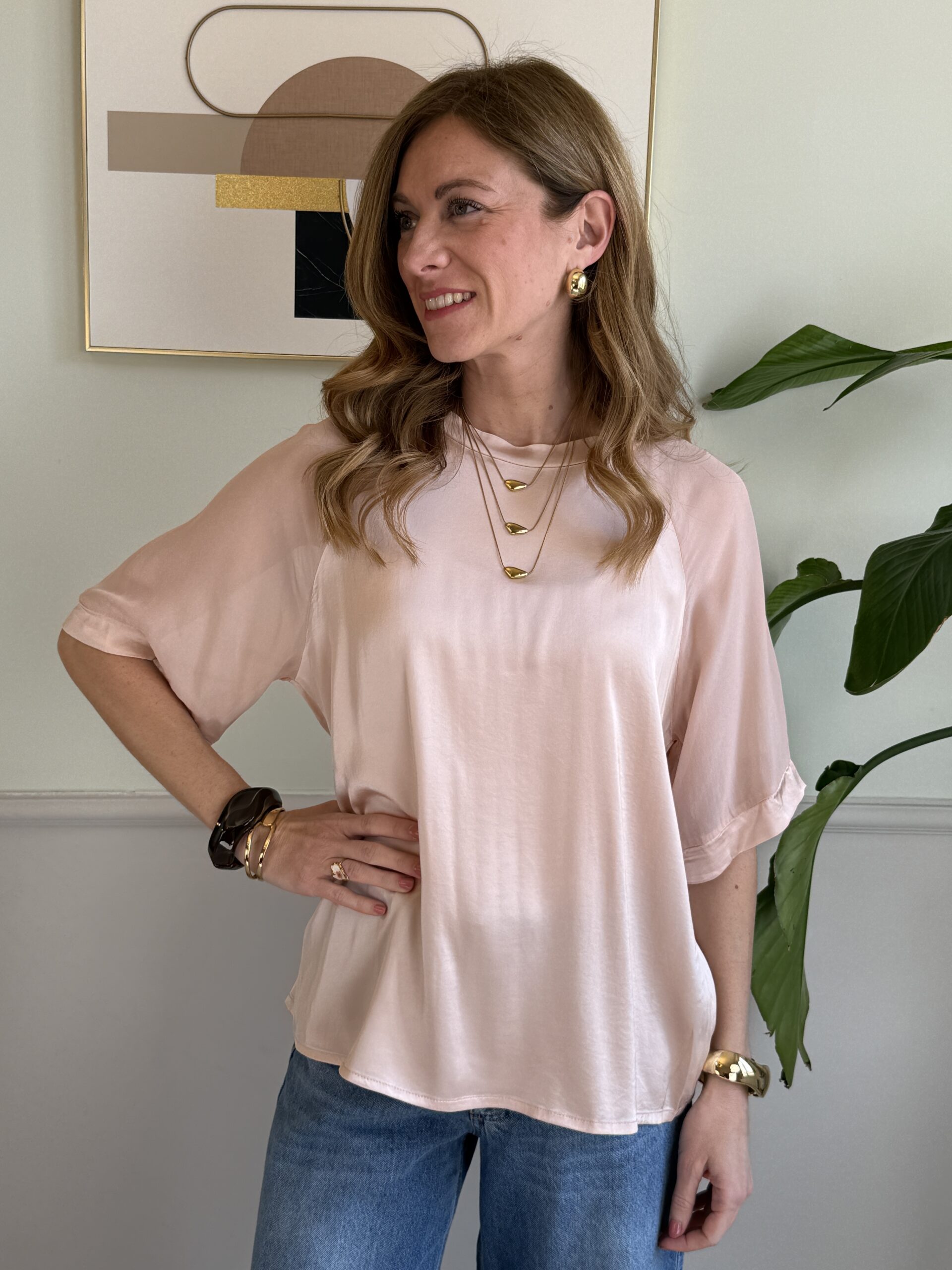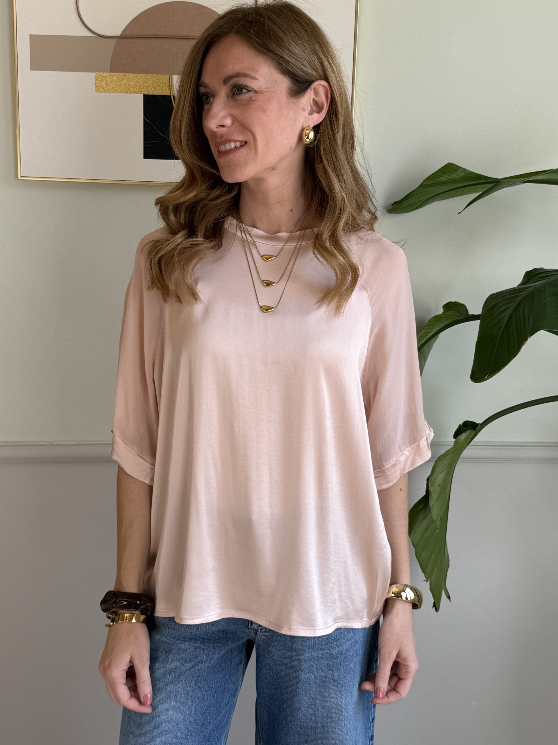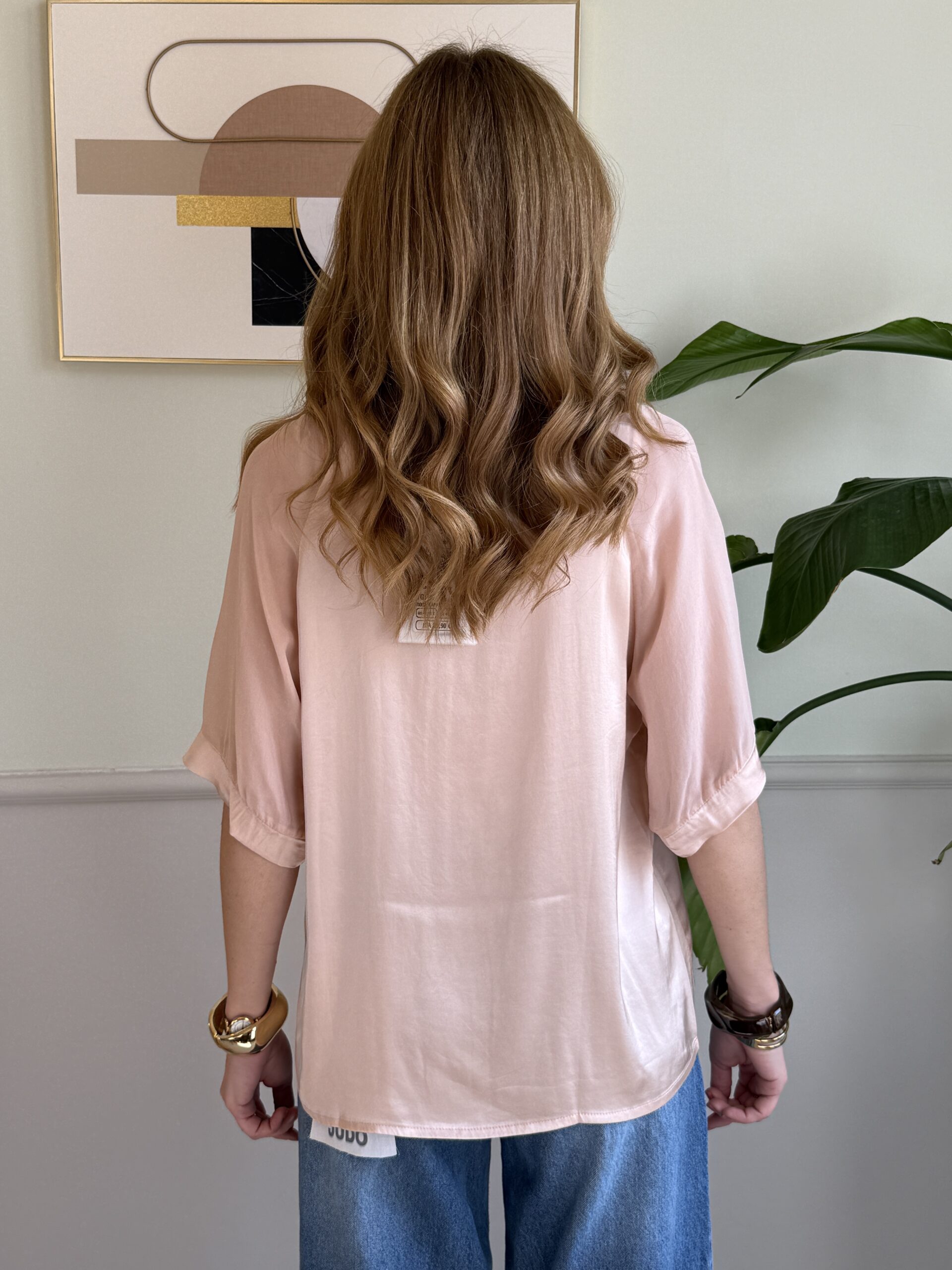 Blusa in raso manica voile SusyMix 266 Rosa cipria