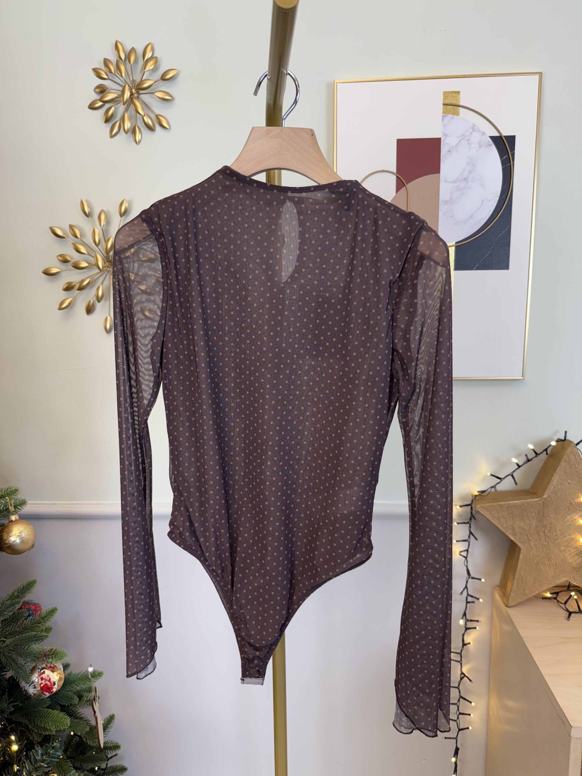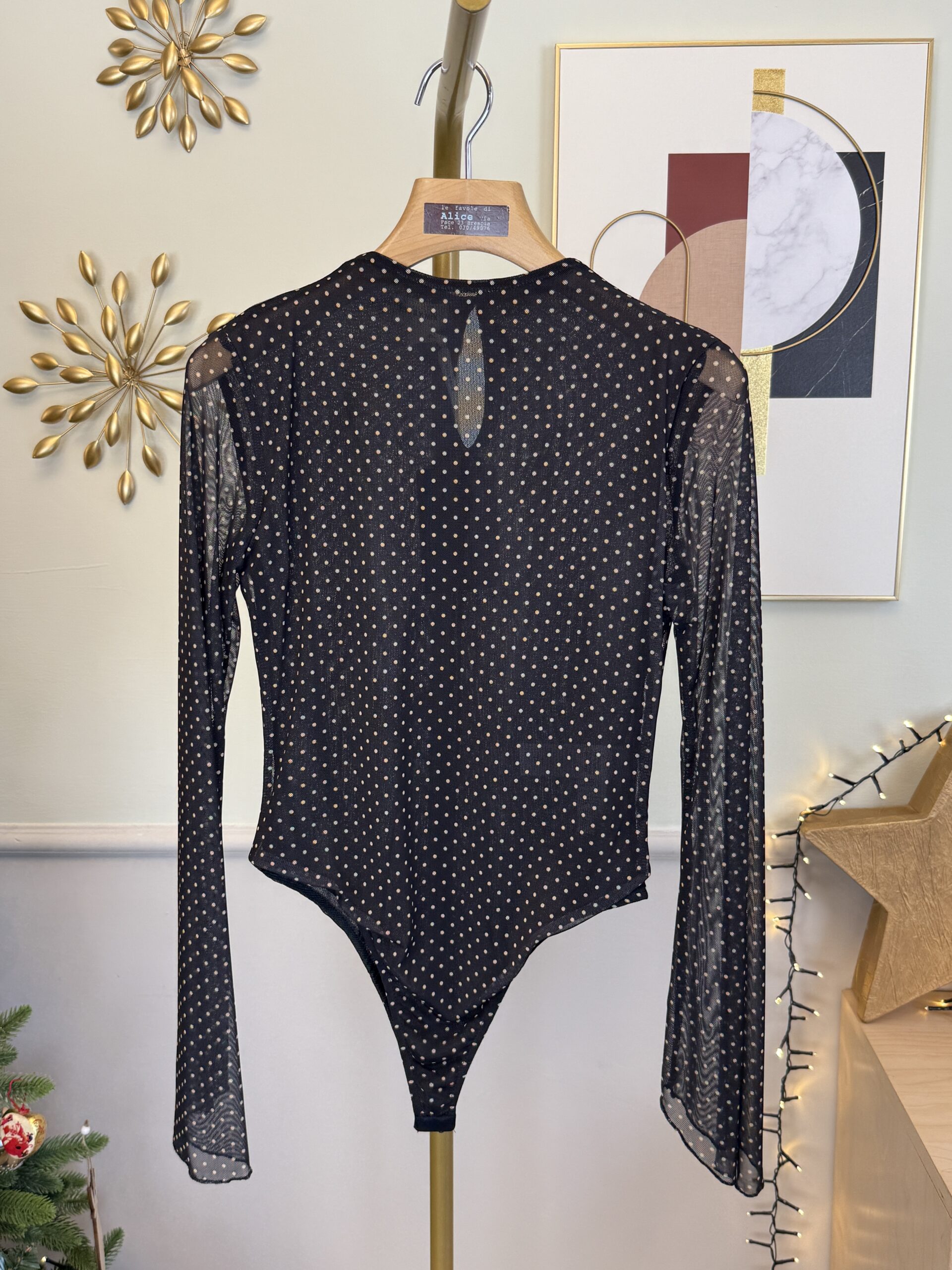 Body in tulle a maniche lunghe con chiusura a gancetti.