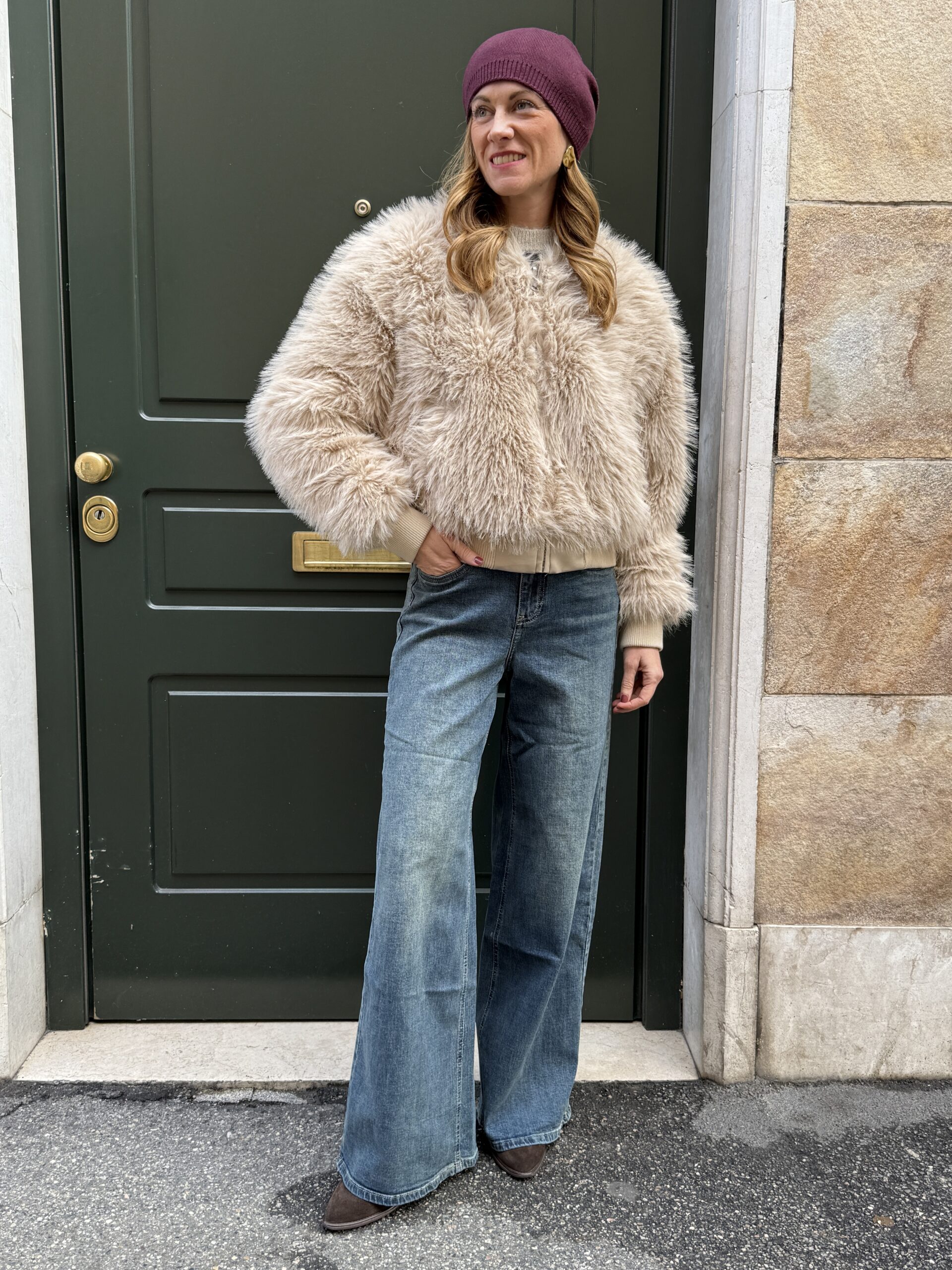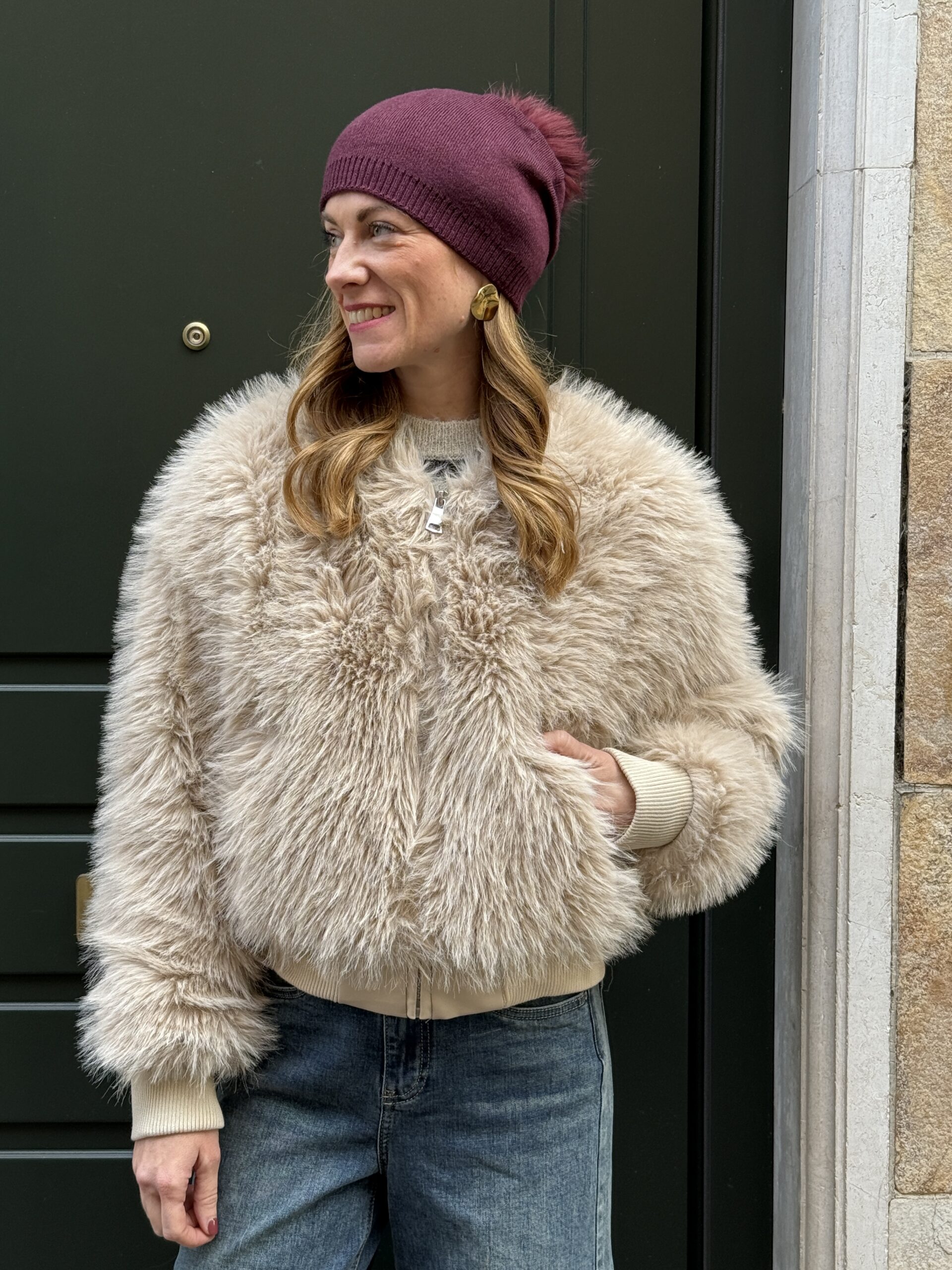 Bomberino cropped eco-fur Beige SusyMix 63