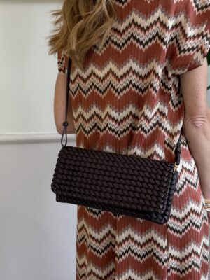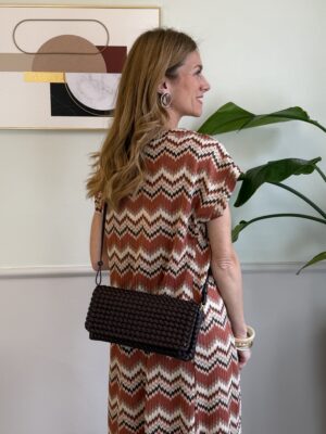 Presenta chiusura magnetica e tracollina in ecopelle.