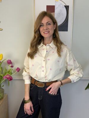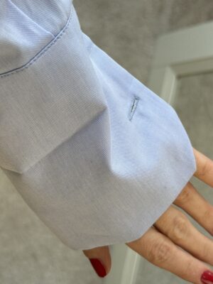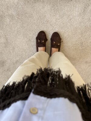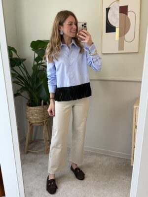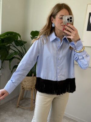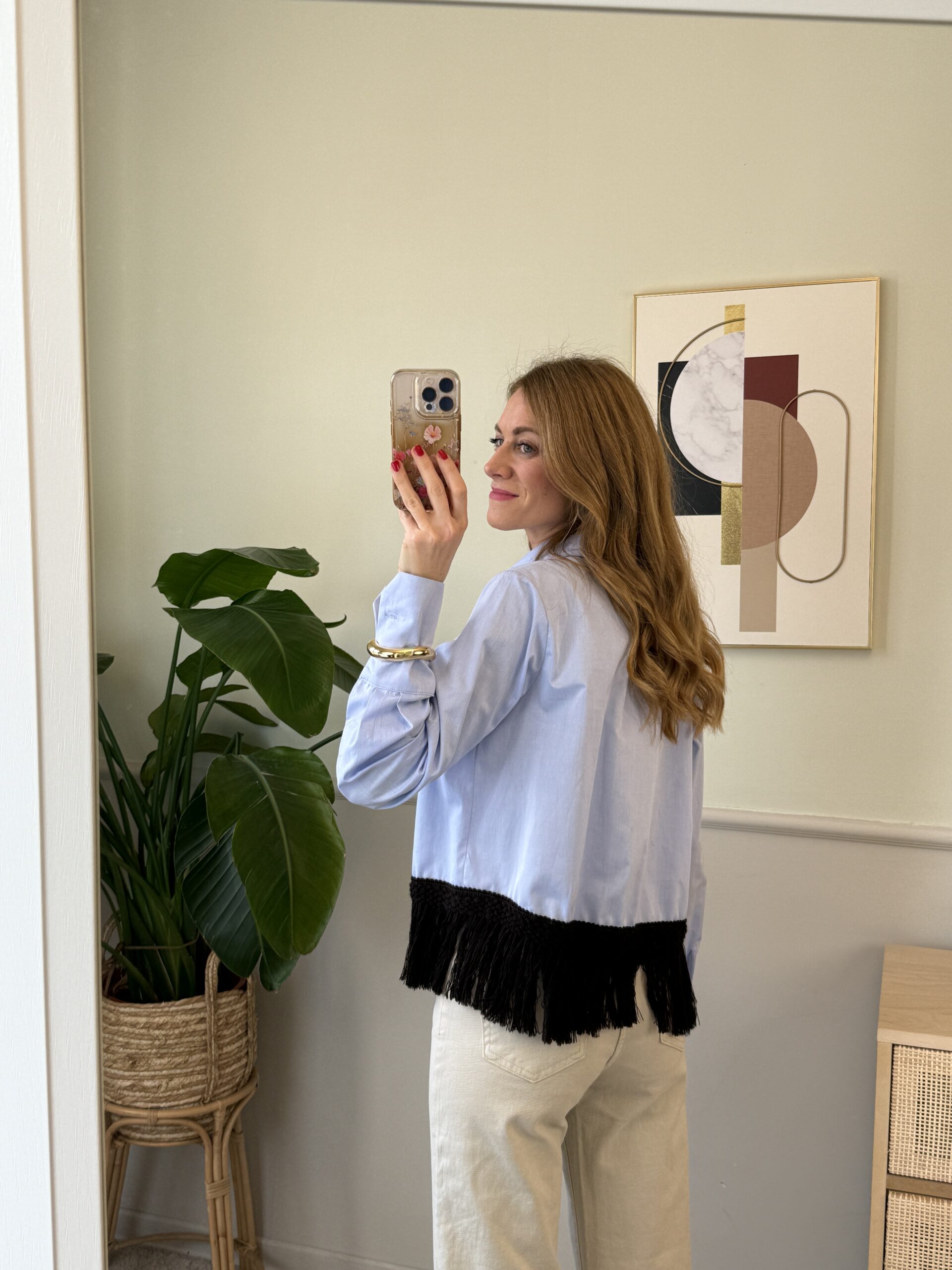 Camicia in cotone a manica lunga con fondo a frange moro.