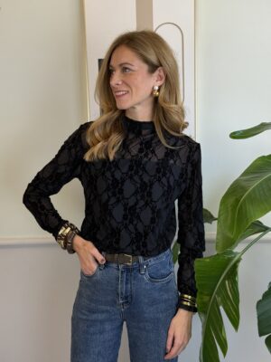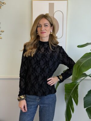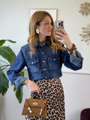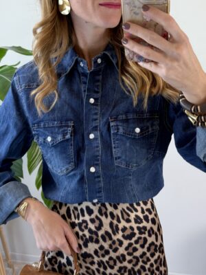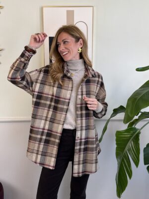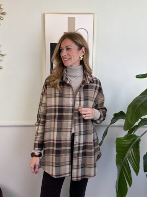 Camicia crop in flanella fantasia check. Spallina imbottita, manica a palloncino con polso alto.