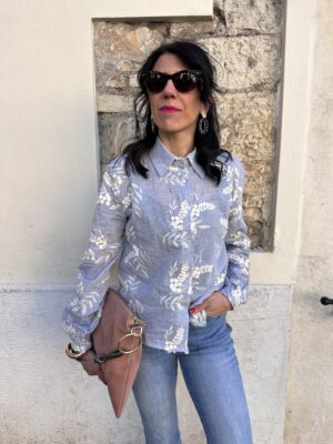 Camicia riga azzurra fiori ricamati SusyMix 100