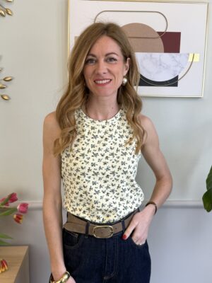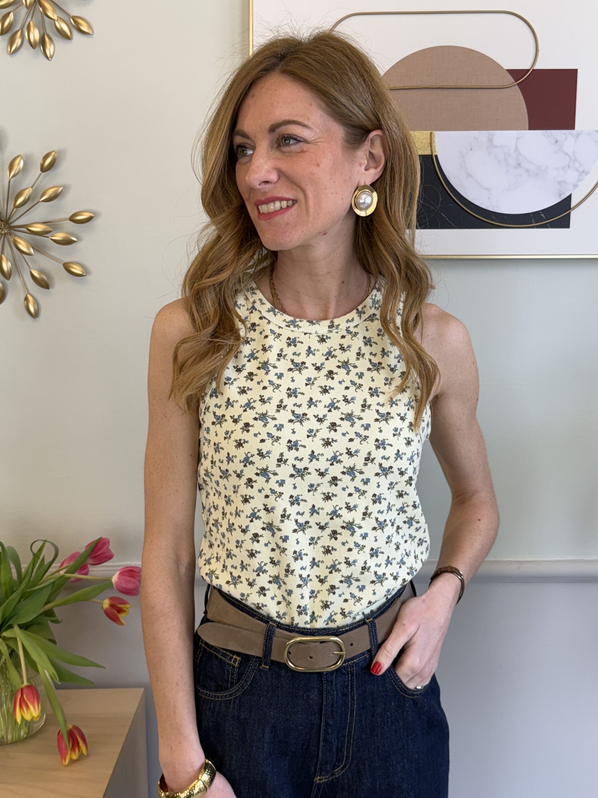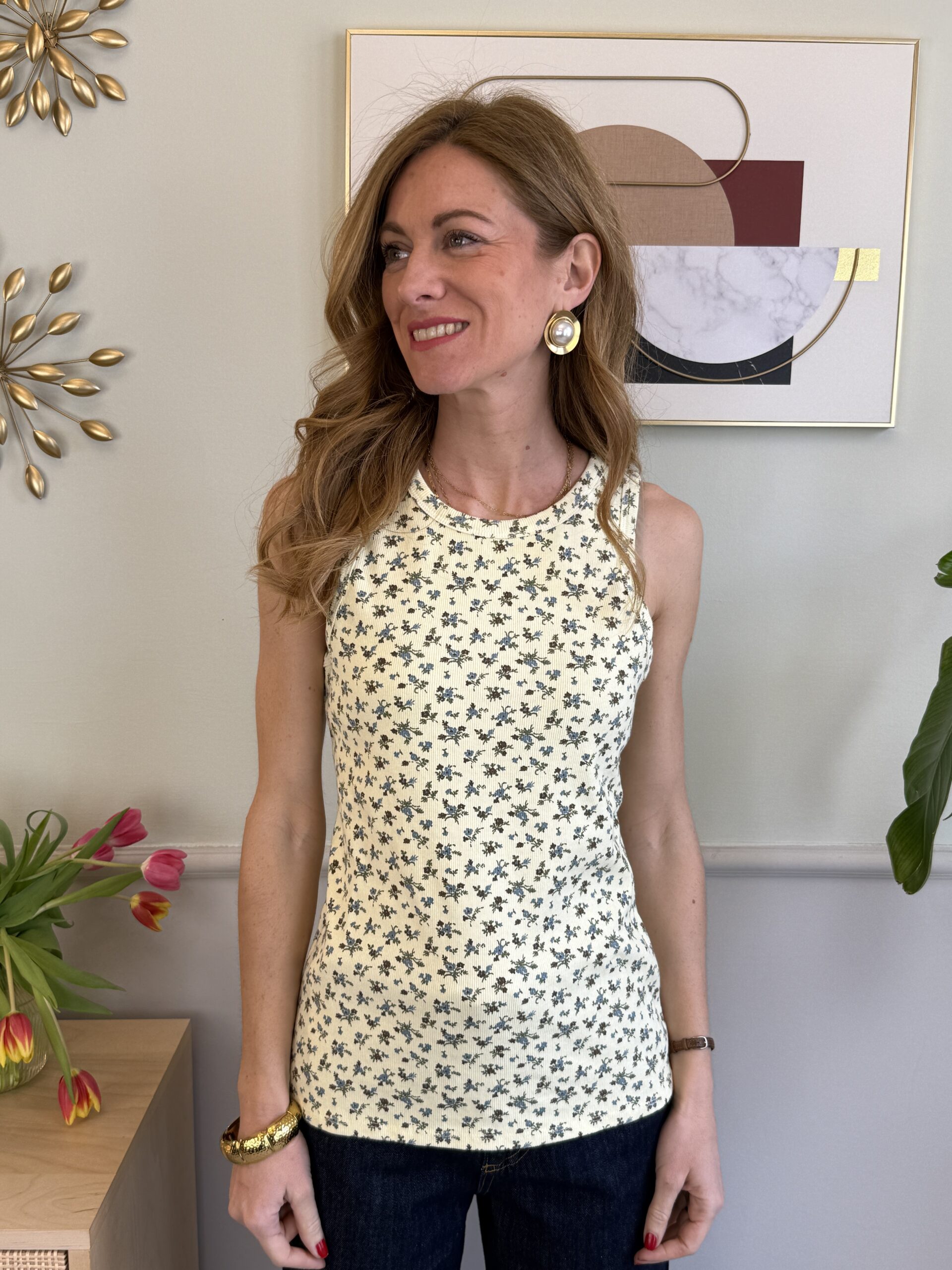 Canotta vogatore a costina in fantasia floreale.