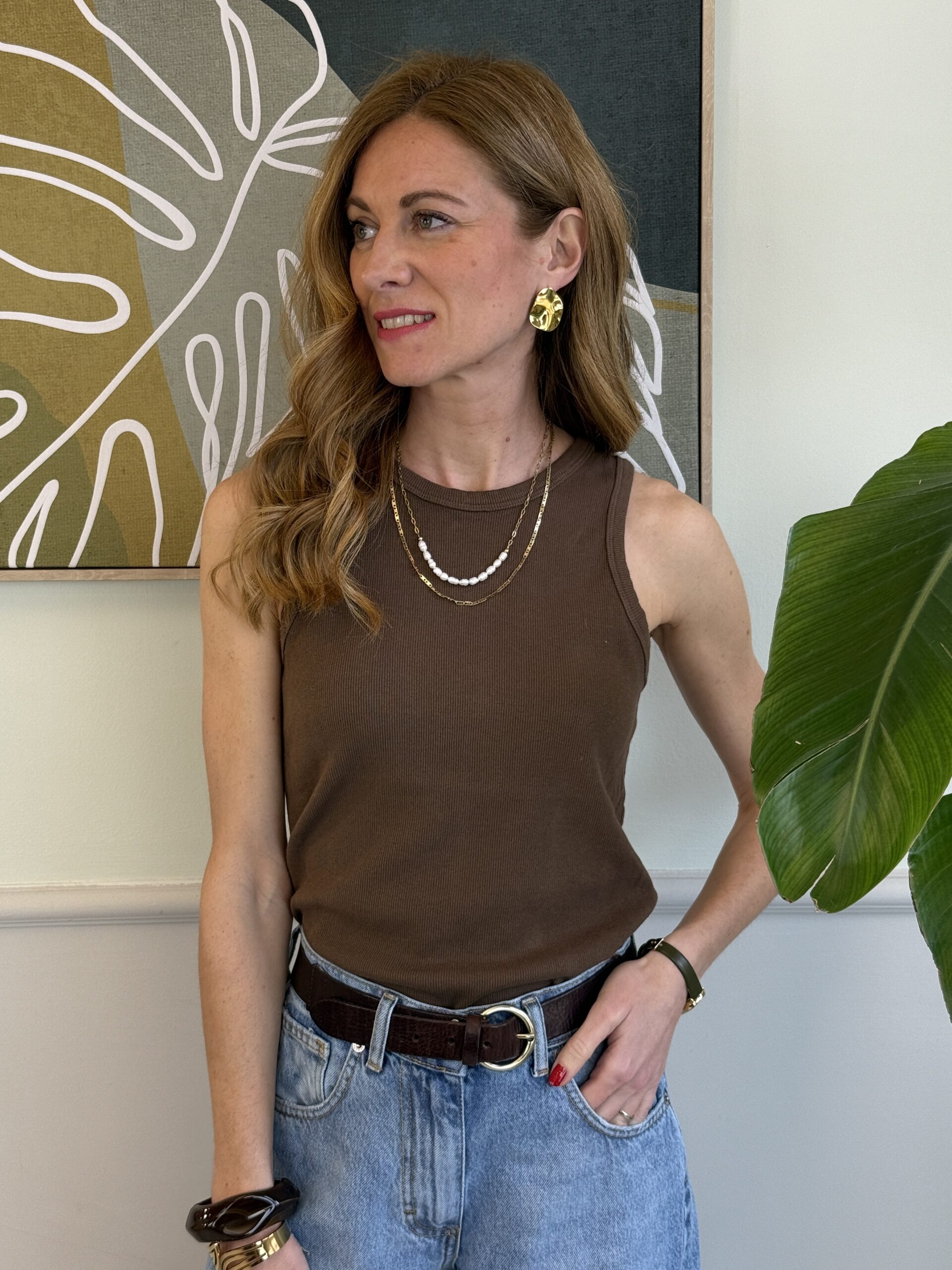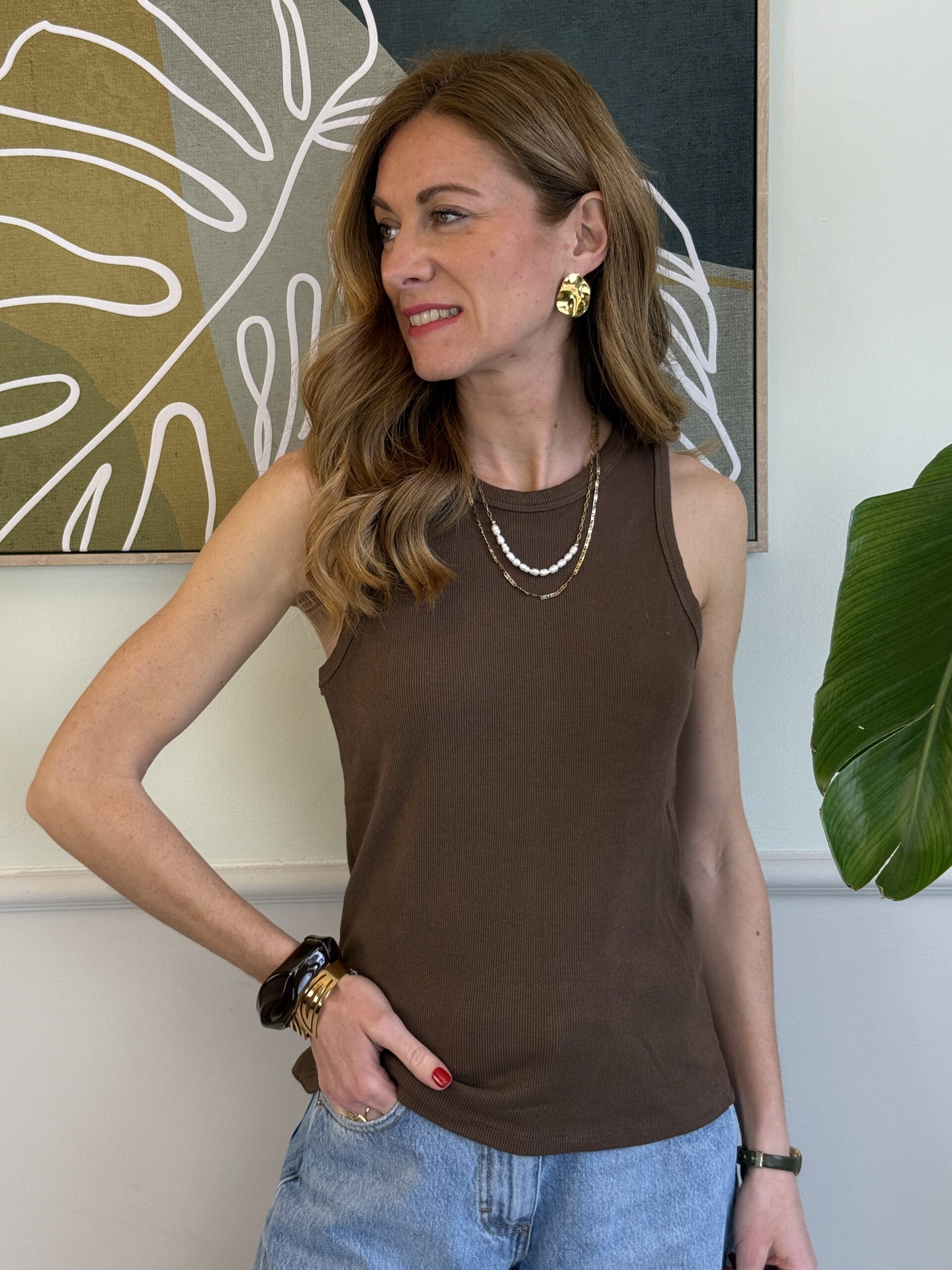Canotta a costine e scollo all’americana.