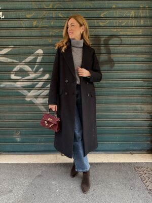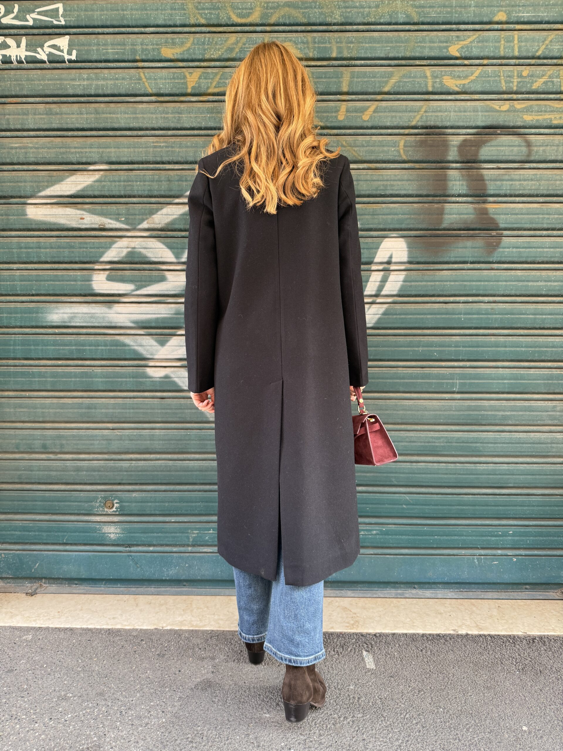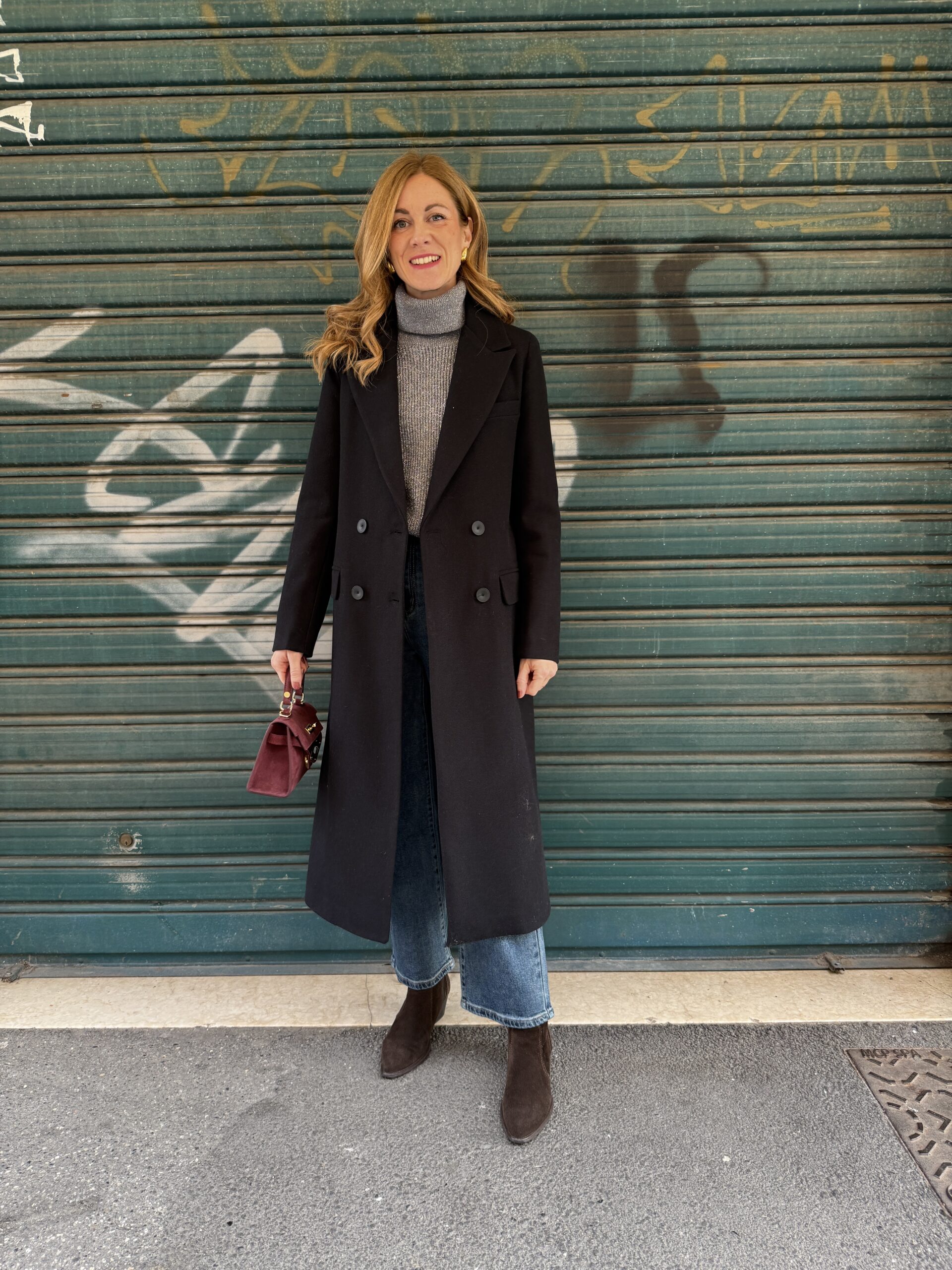 Cappotto dal fit diritto, in tessuto diagonale , foderato.