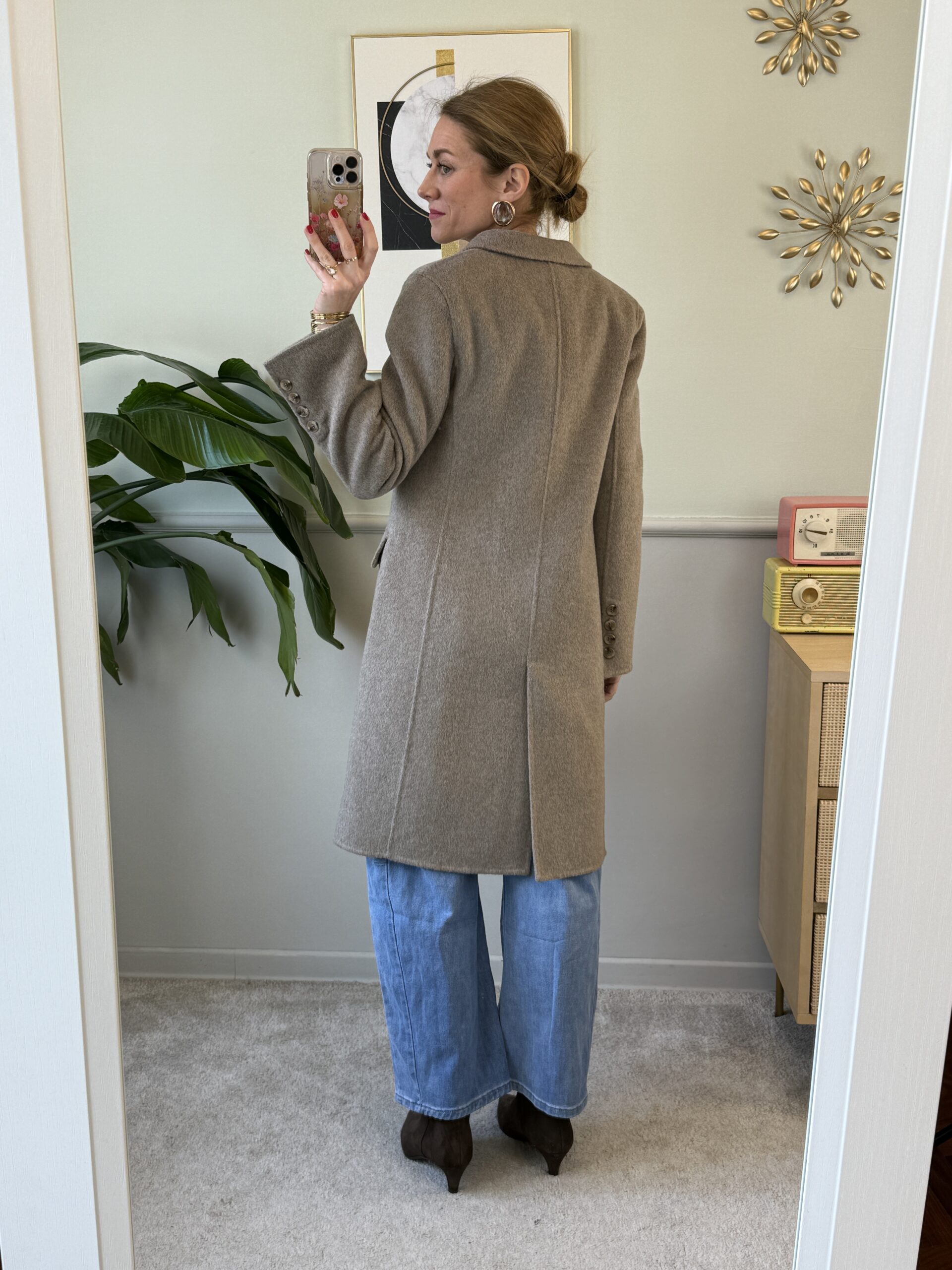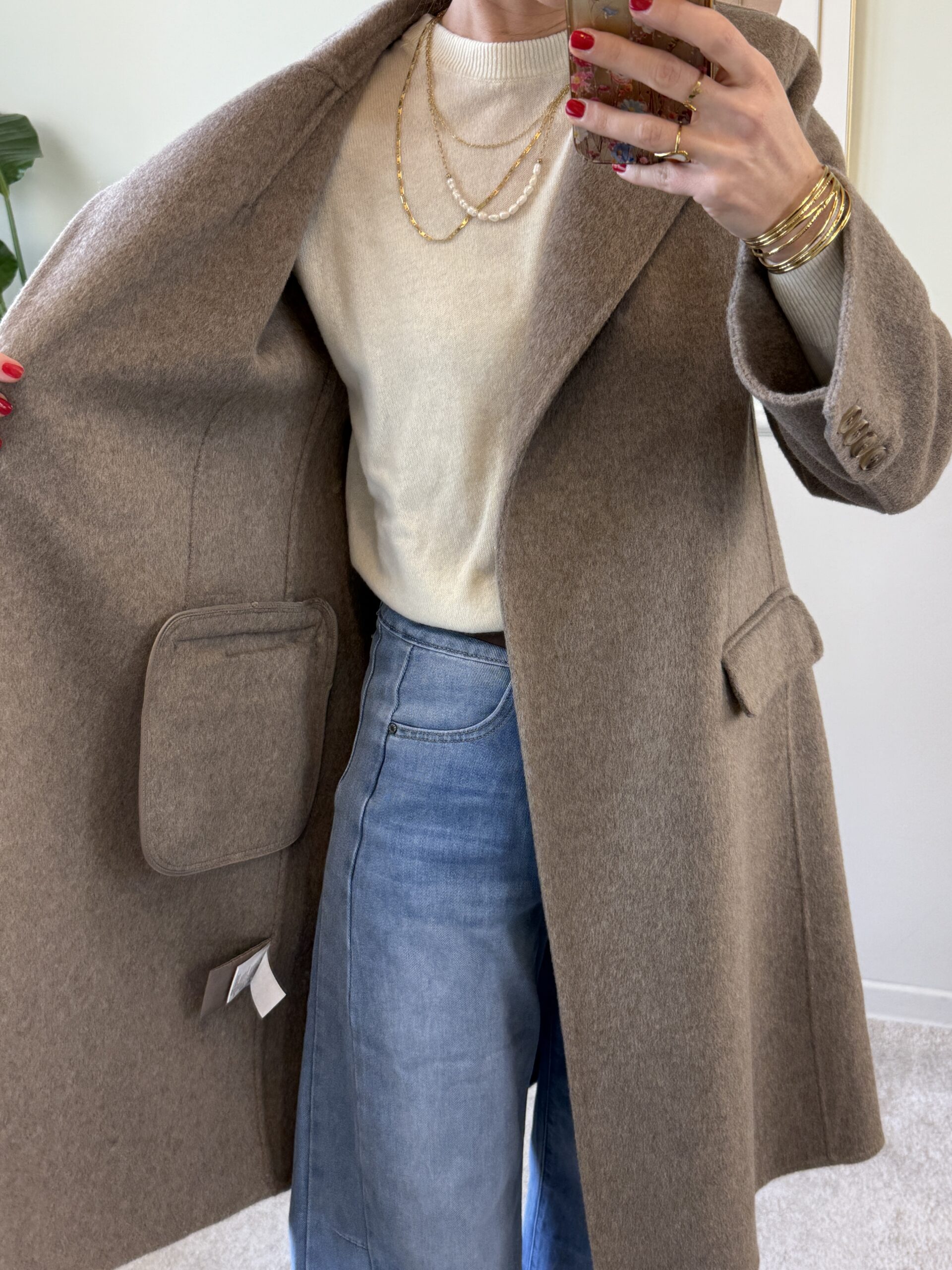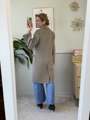 Cappotto midi fatto a mano con 50% lana non foderato.