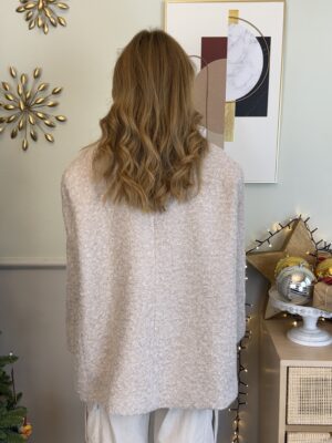 Cappotto con taglio giacca over. Effetto bouclé sui toni del panna.