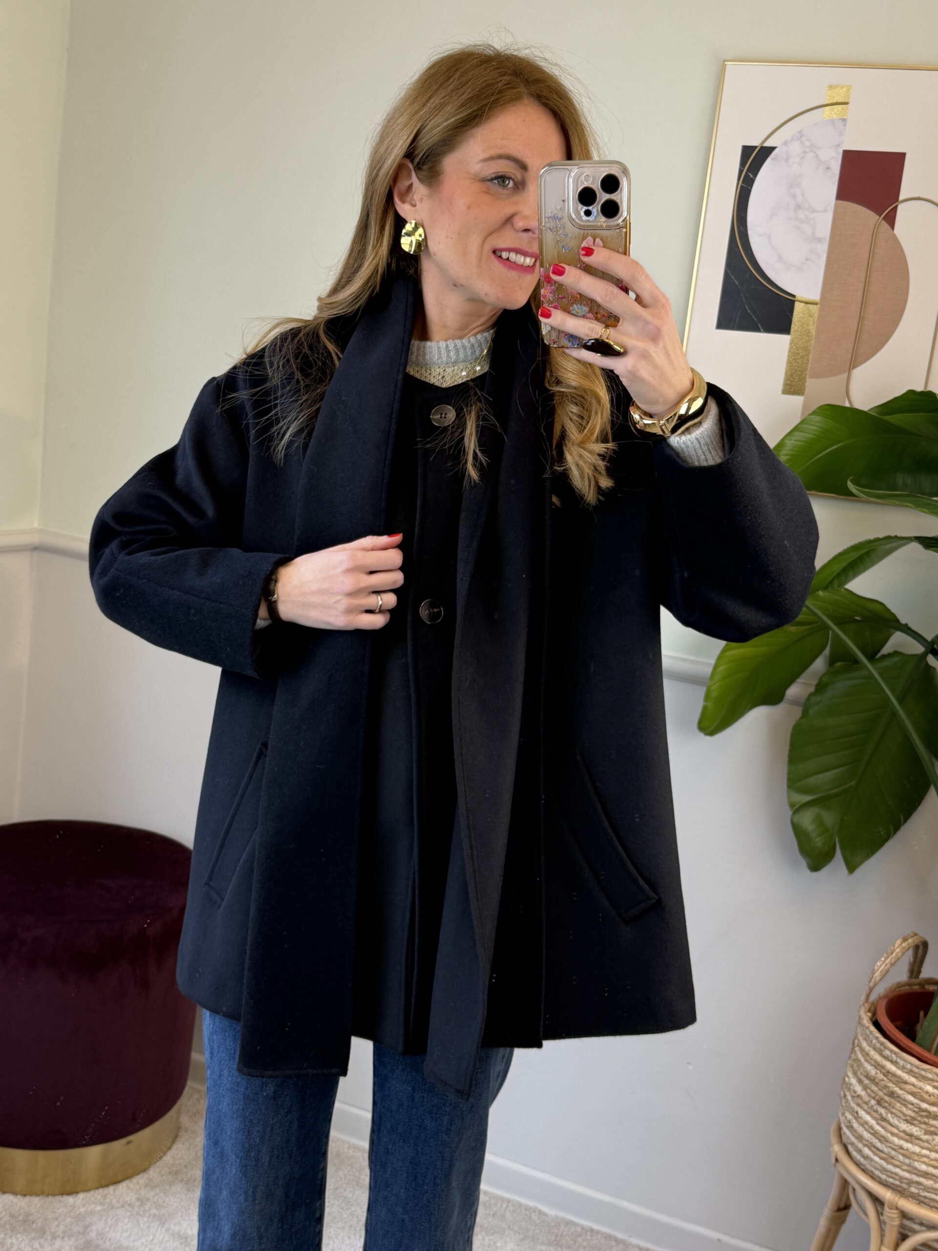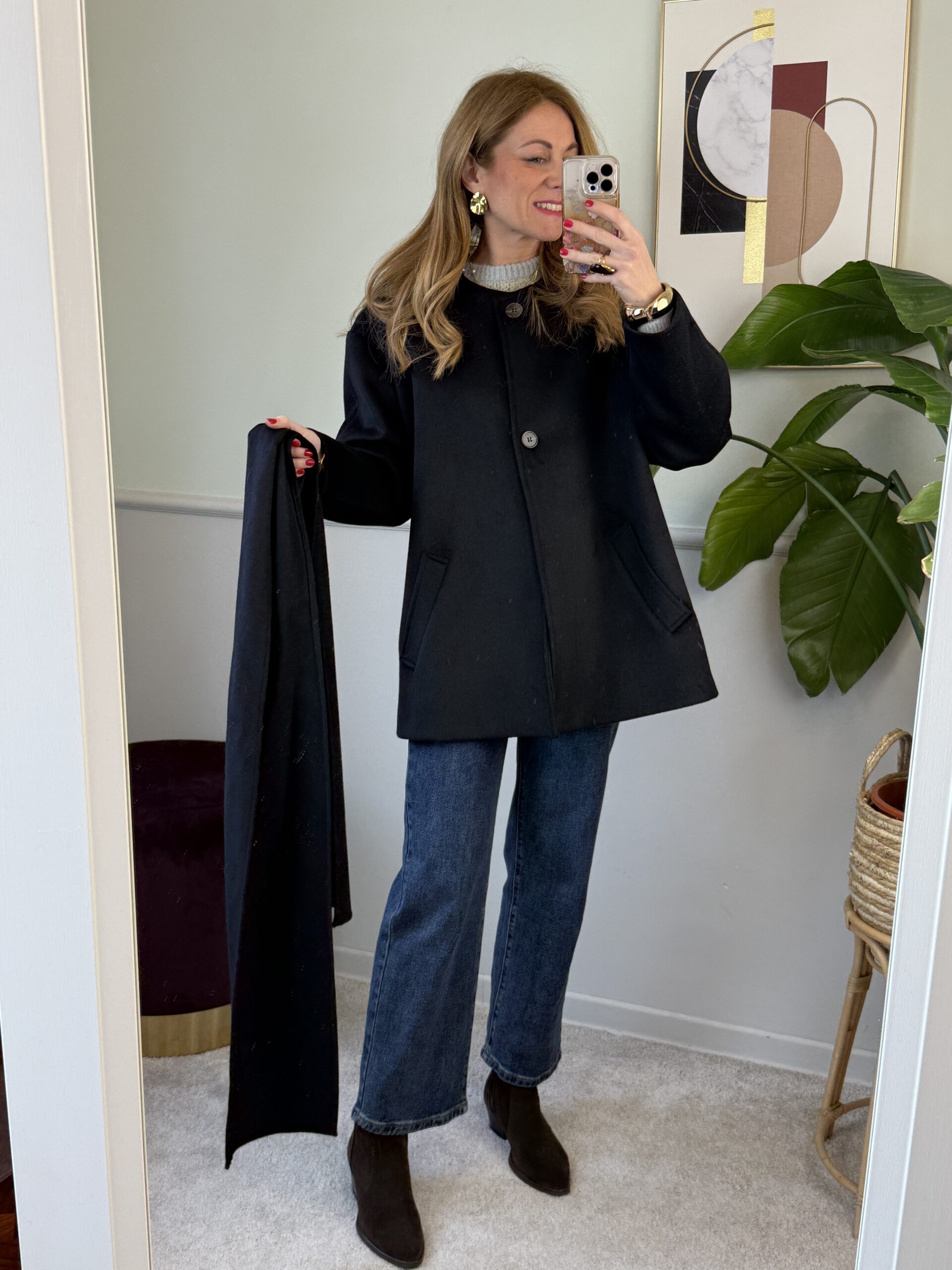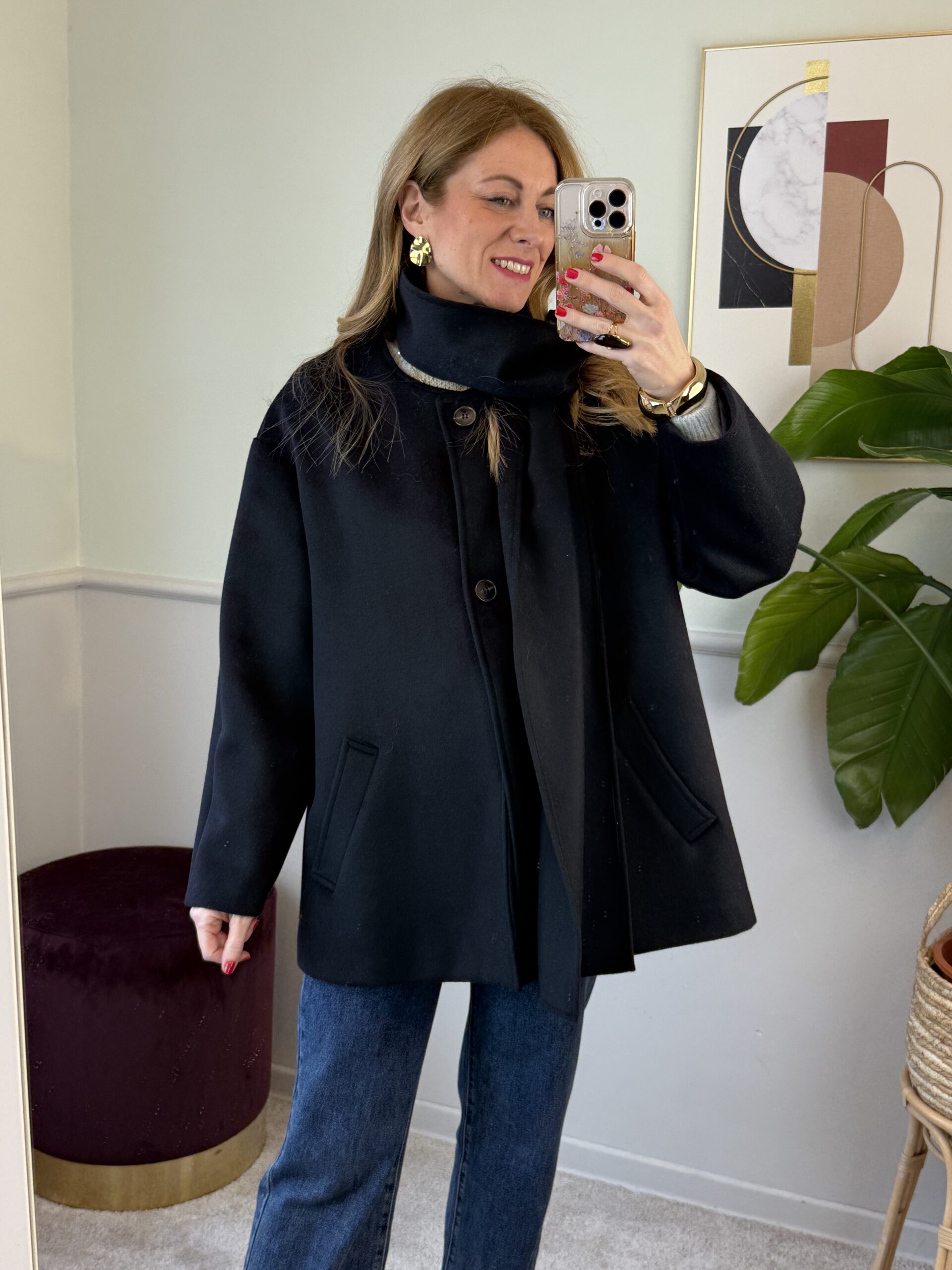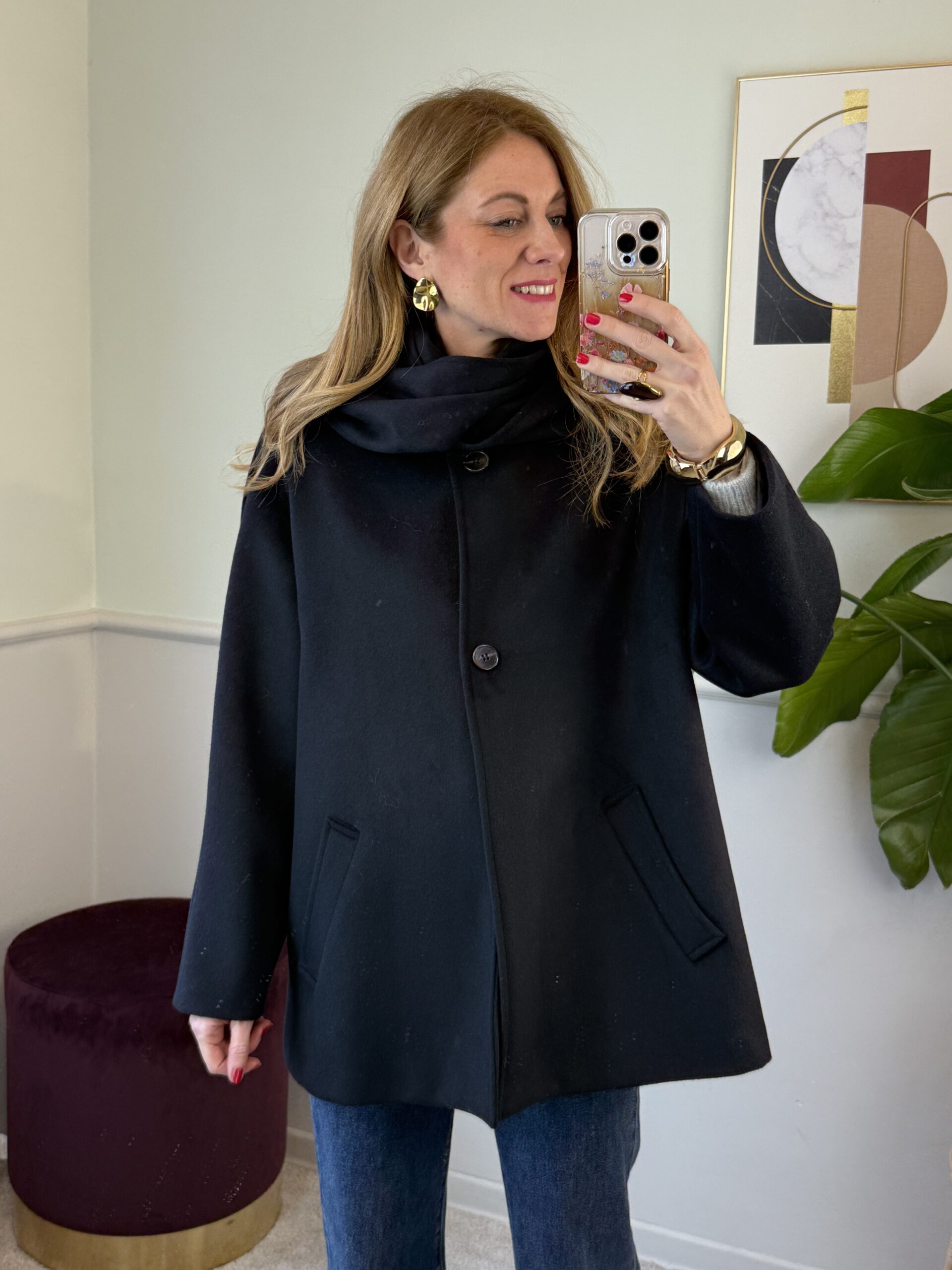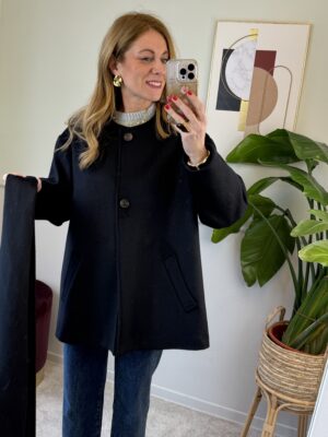 Cappotto trapezio 50% lana con sciarpa Nero Vicolo 38