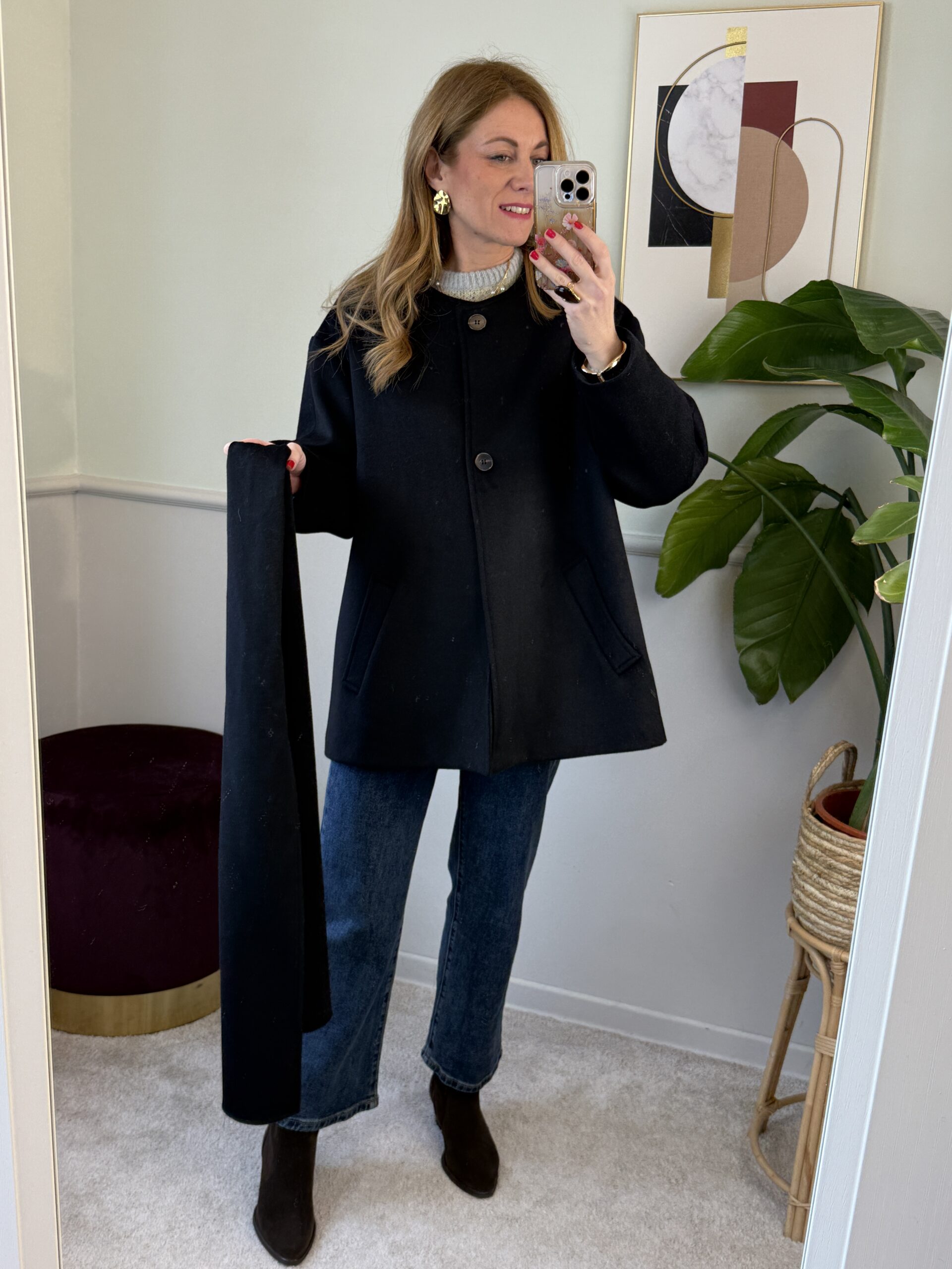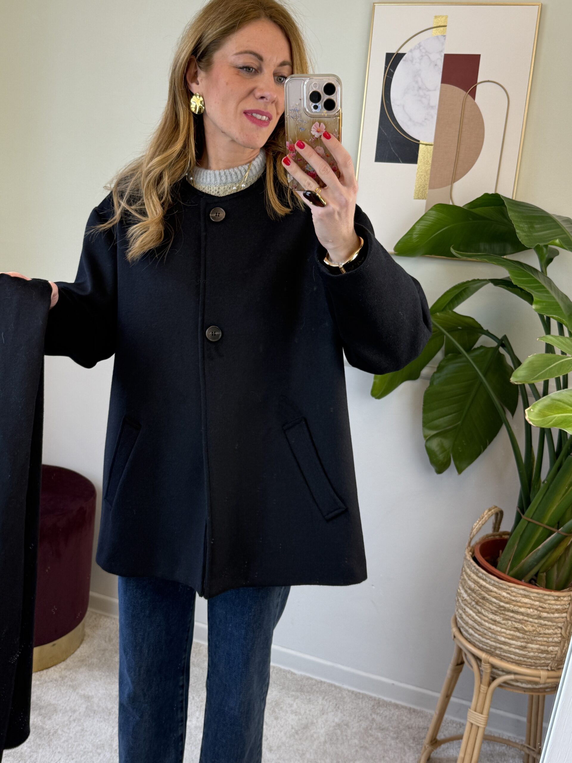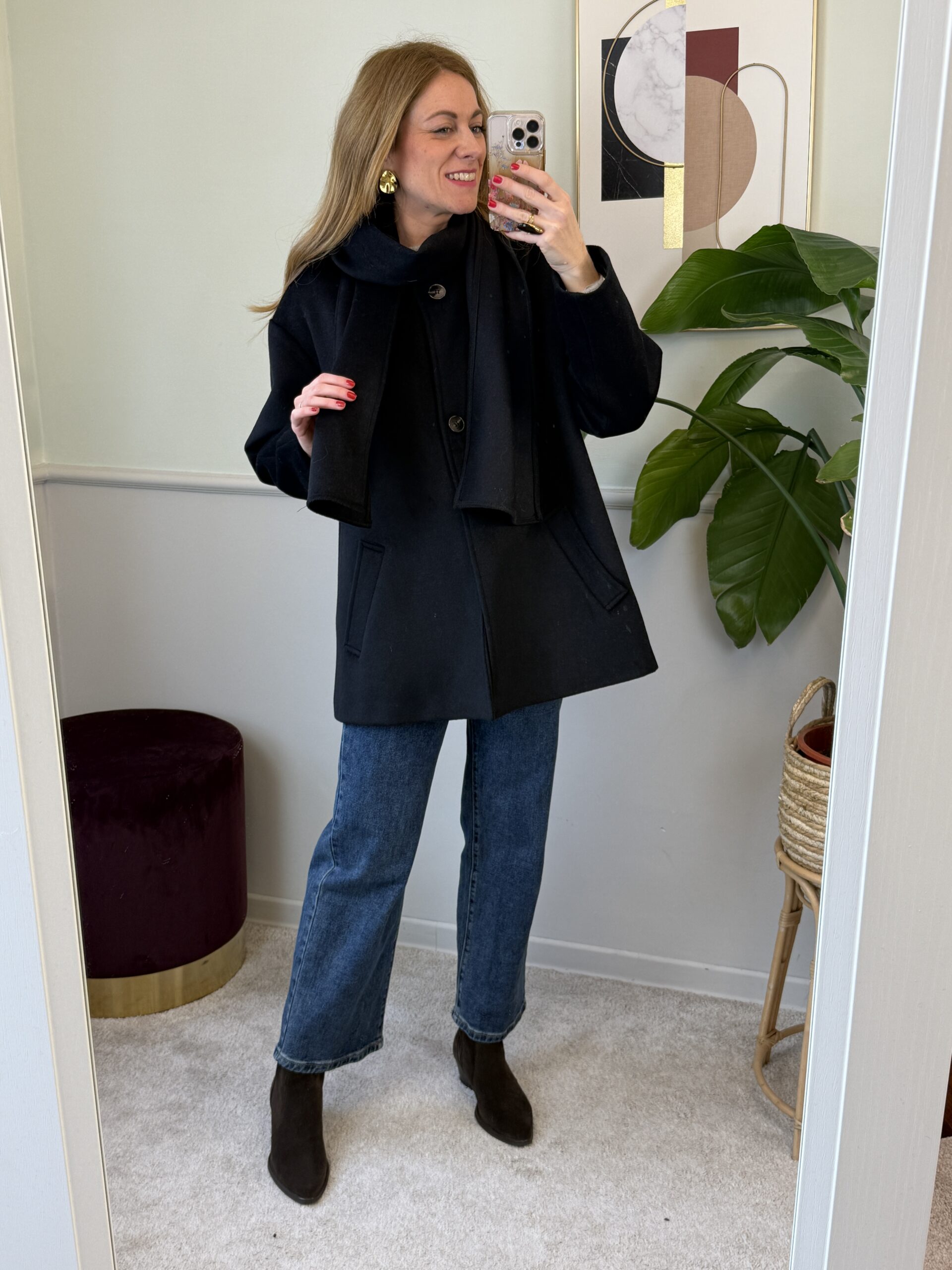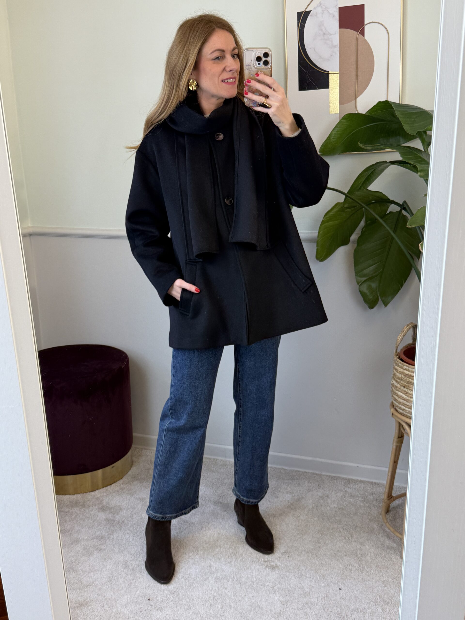 Cappotto trapezio 50% lana con sciarpa Nero Vicolo 38