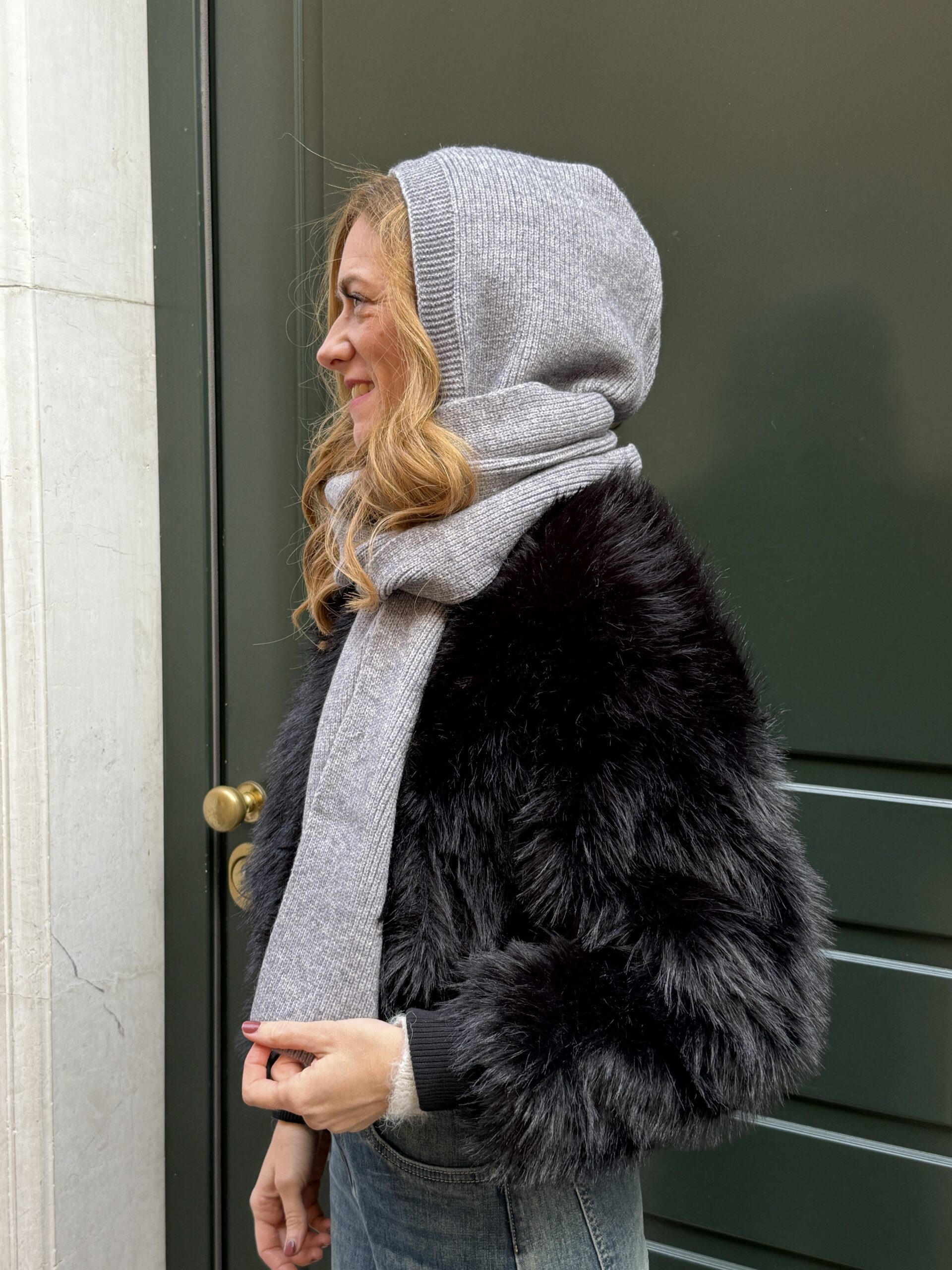 Cappuccio con sciarpa attaccati insieme, scalda testa e collo!