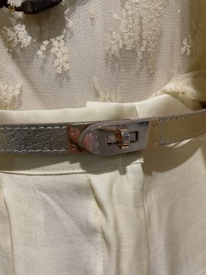 Cintura in pelle regolabile con fibbia dorata a lucchetto.