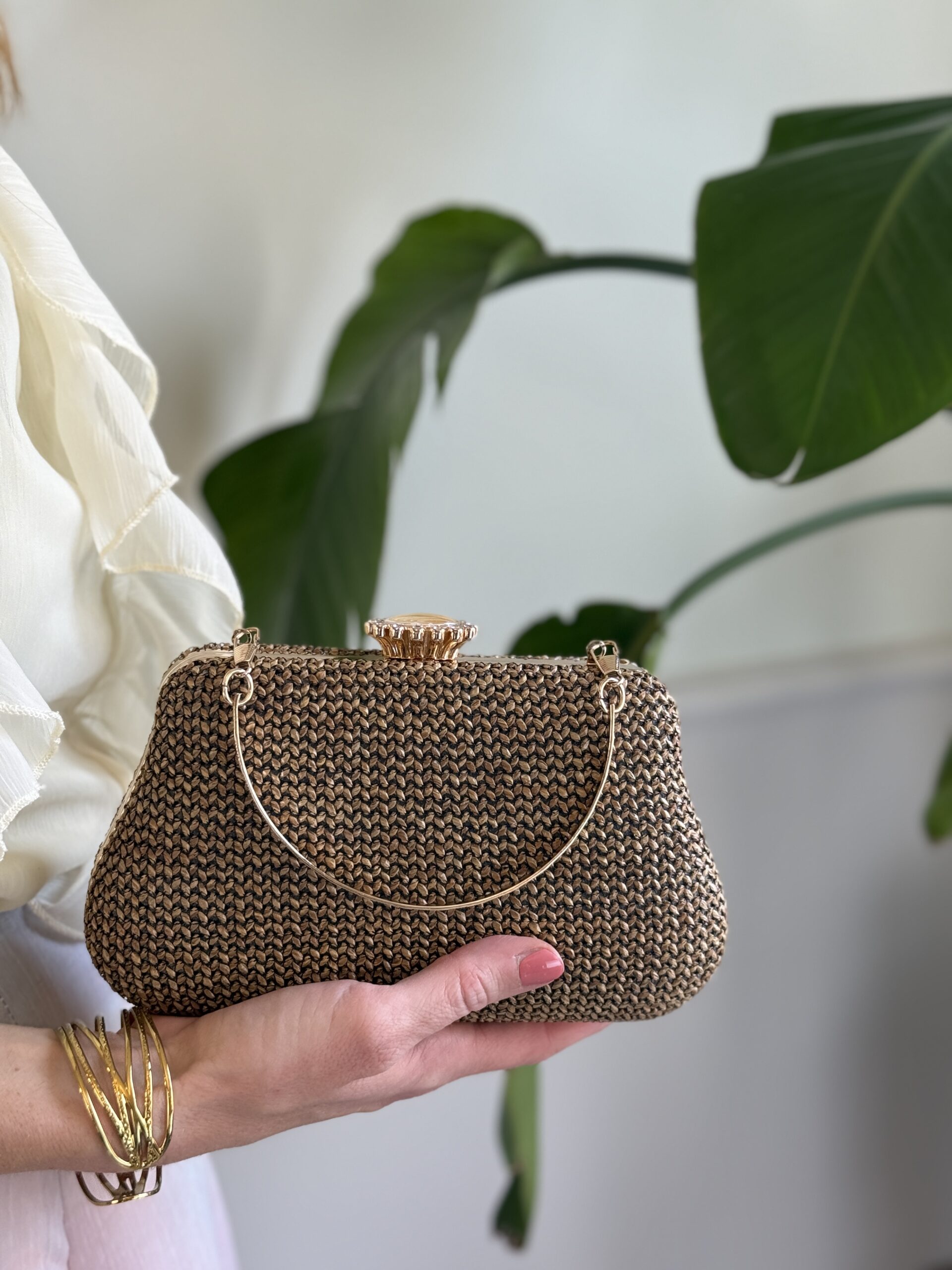 Cluch in raffia, si può portare a mano e a tracolla.