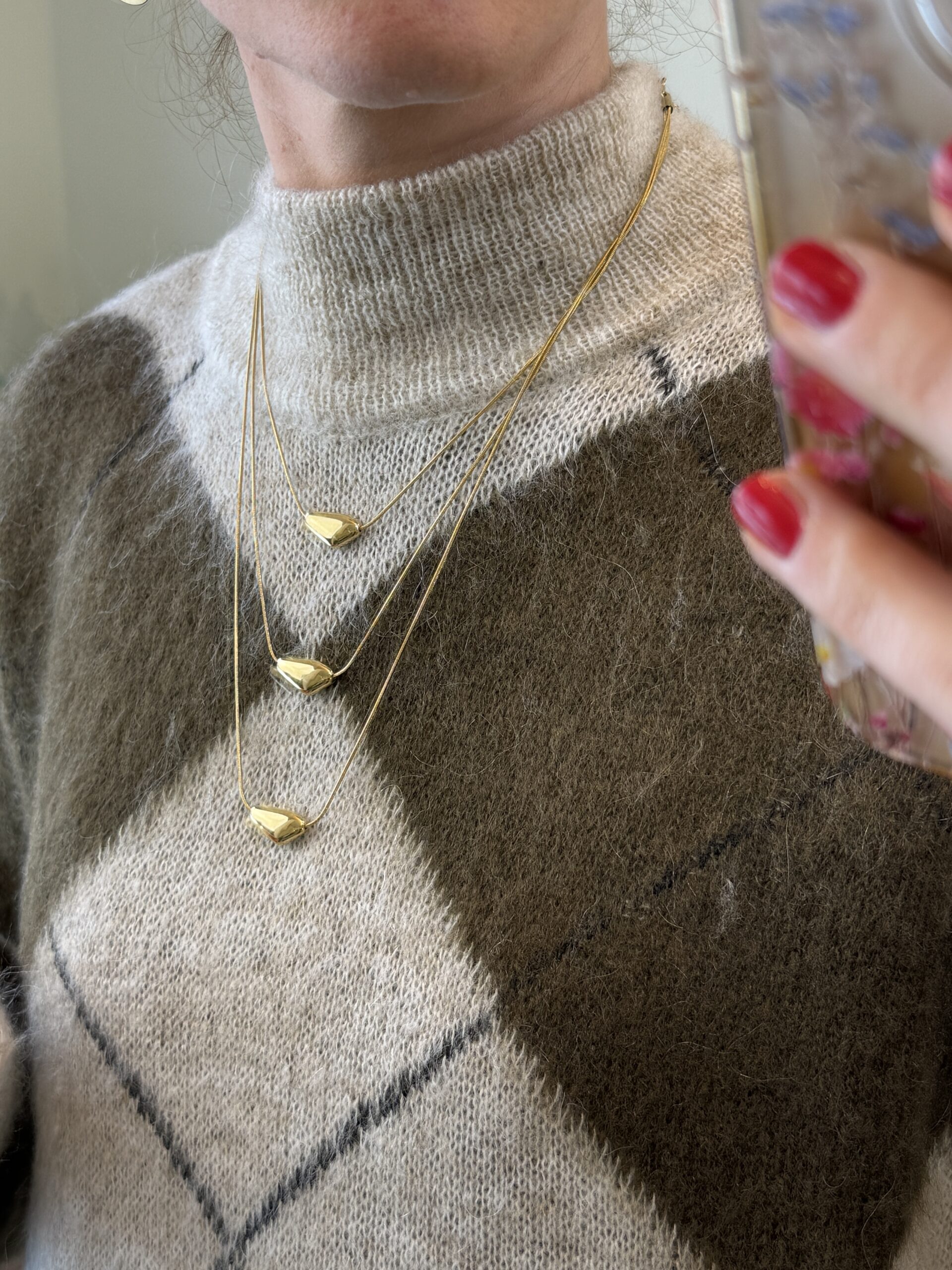 Collana con tre fili dorati.