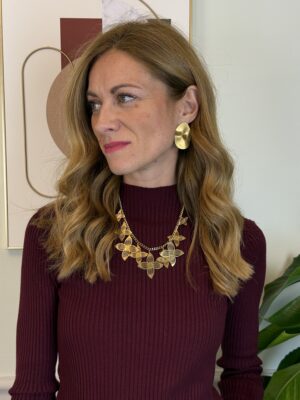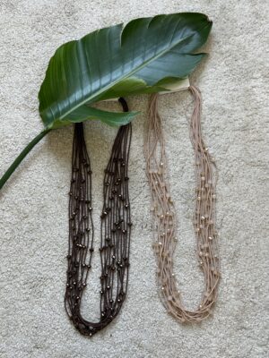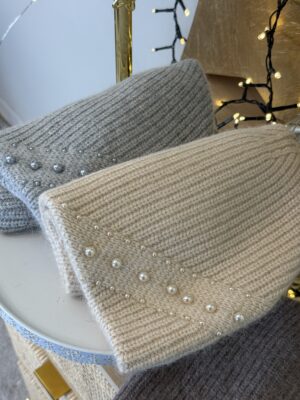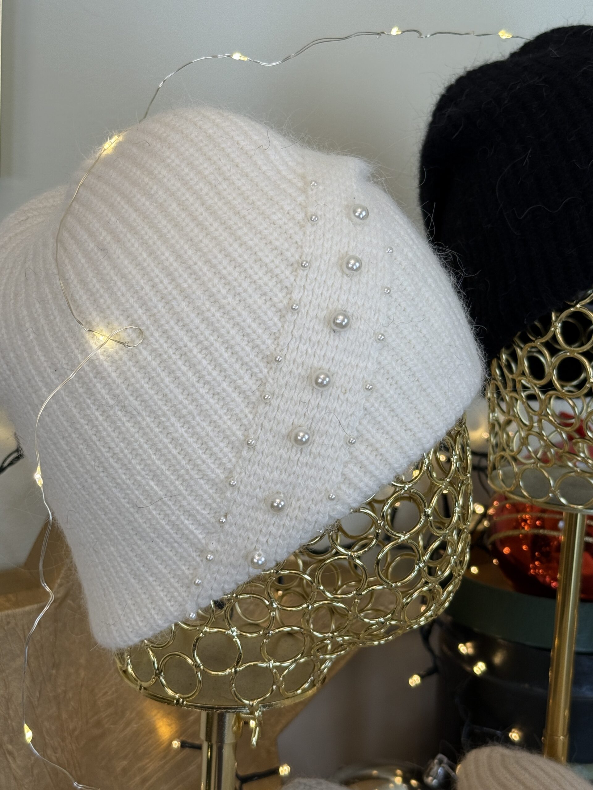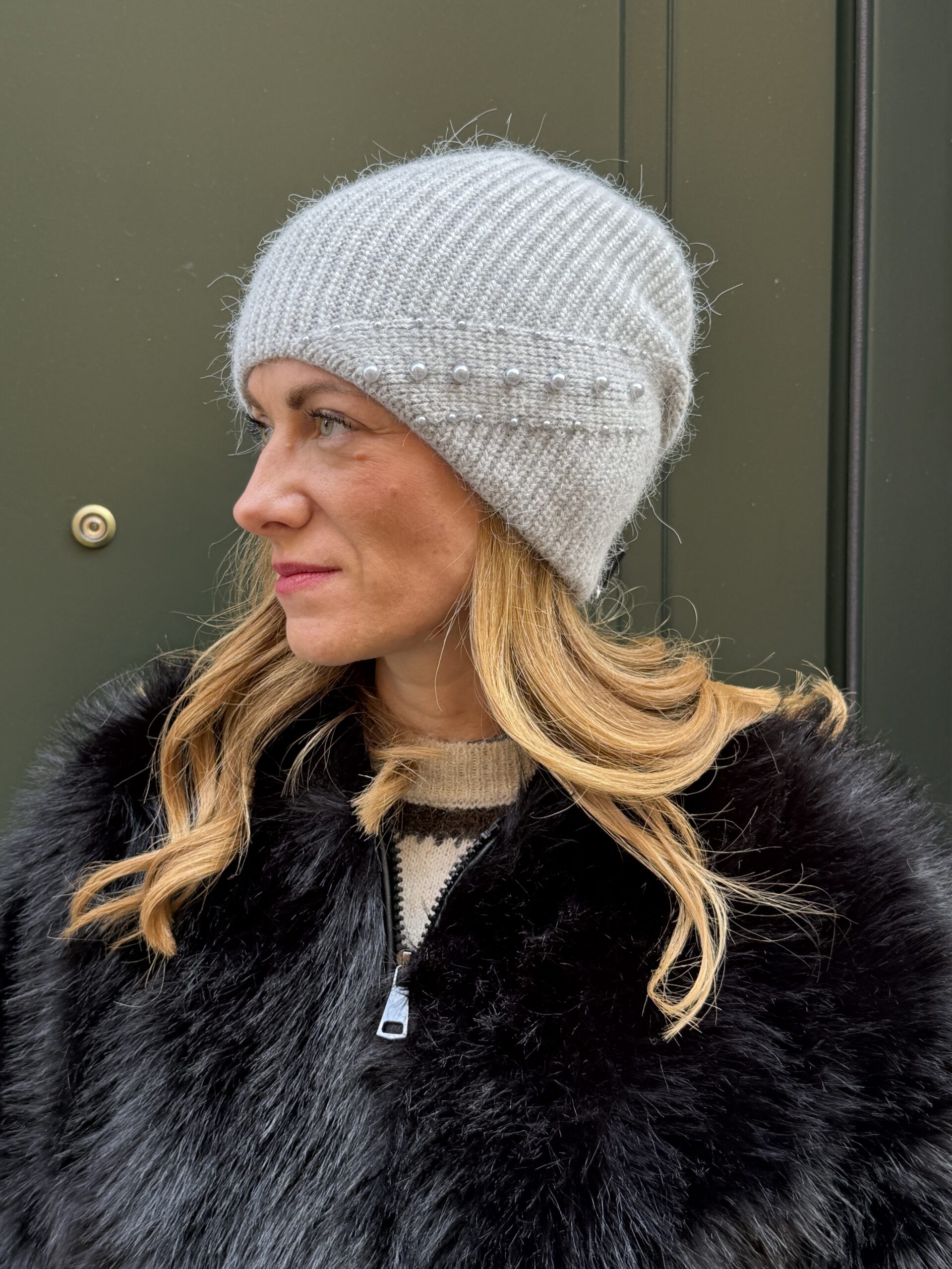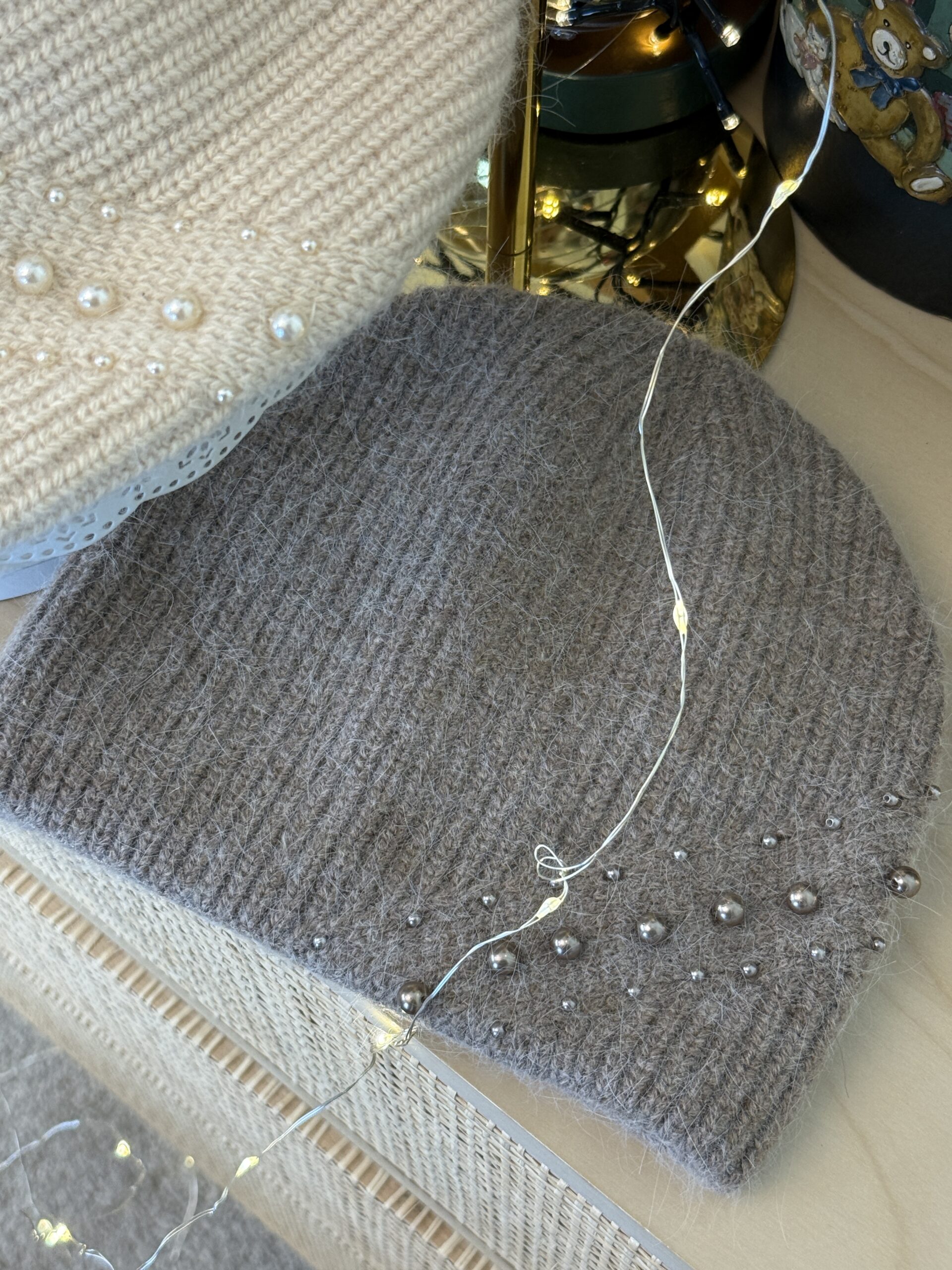 Cuffia in doppio tessuto misto lana di Angora con perline laterali.