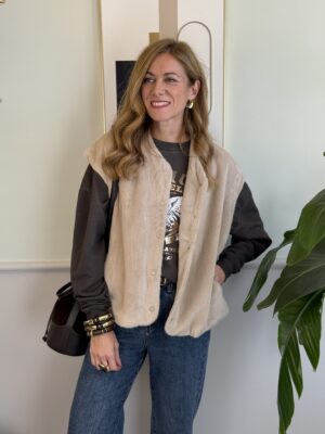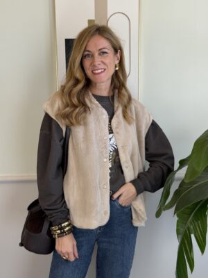 Cappotto in lavorazione spigata con collo in eco pelliccia removibile.