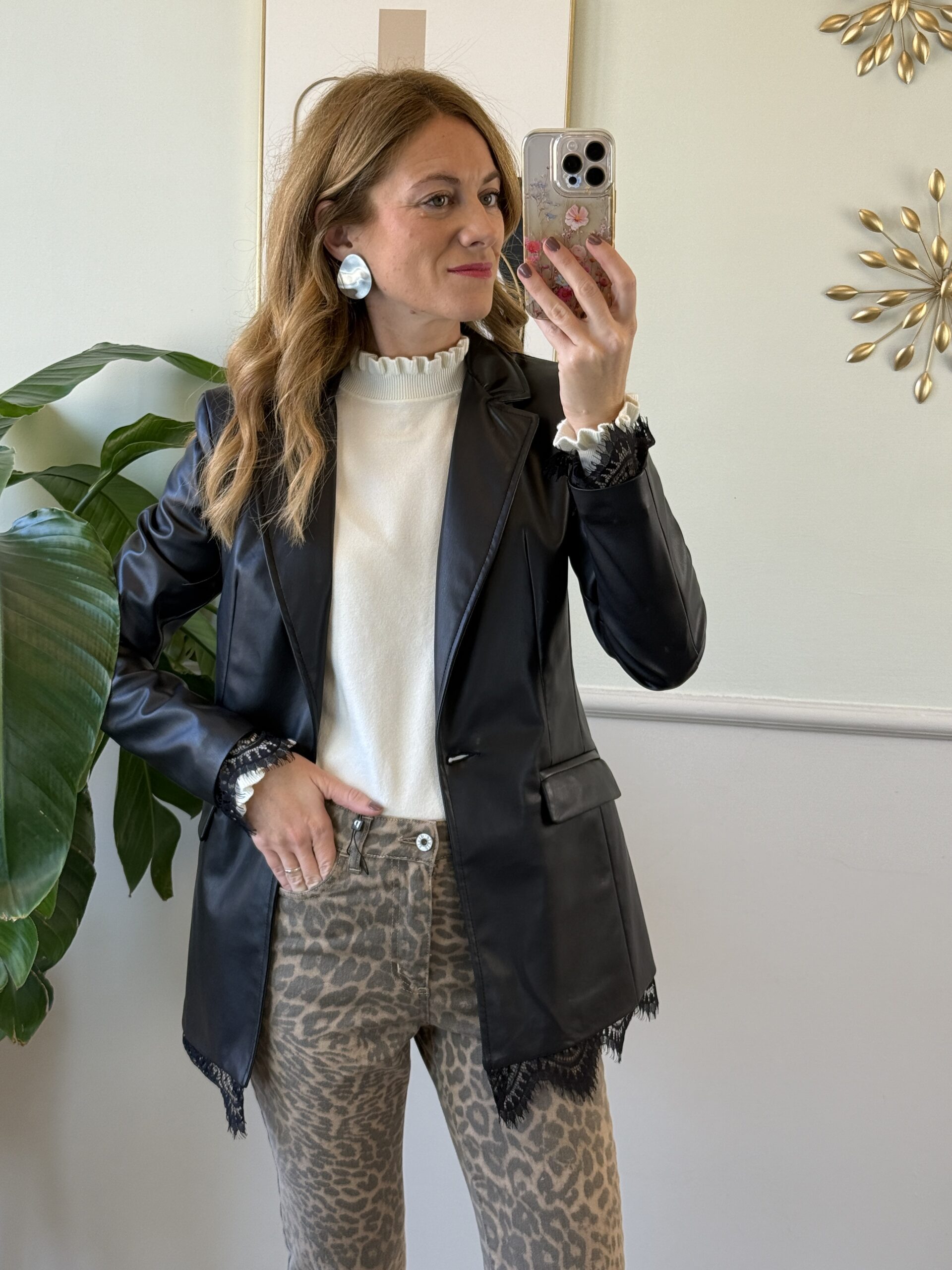Giacca eco pelle nera orlo in pizzo SusyMix 319 OUTLET NO CAMBIO/RESO