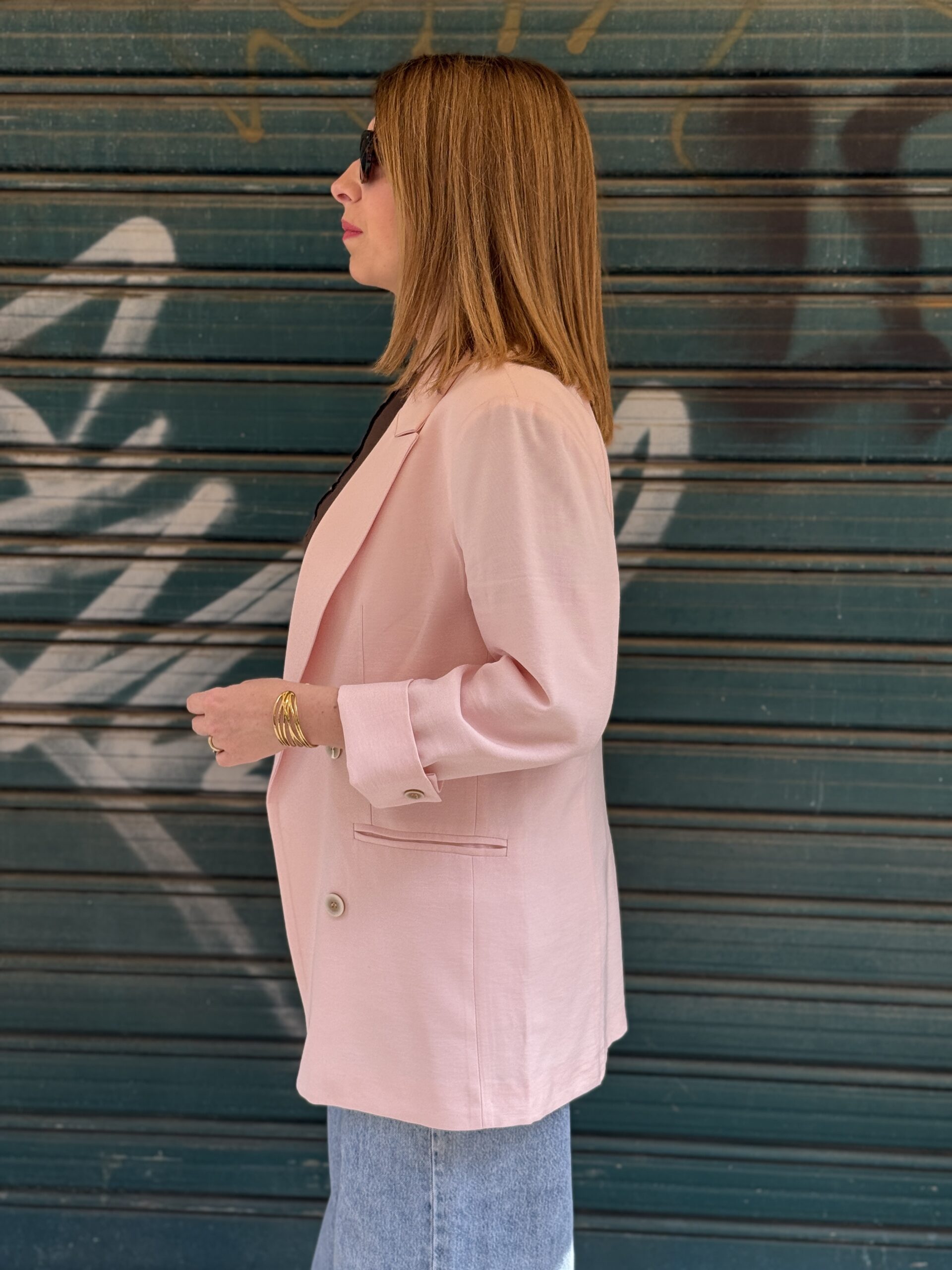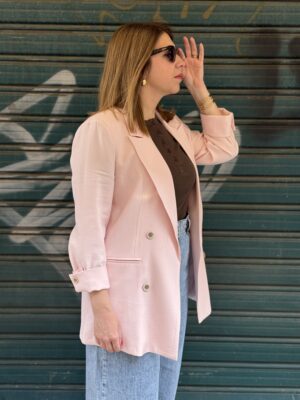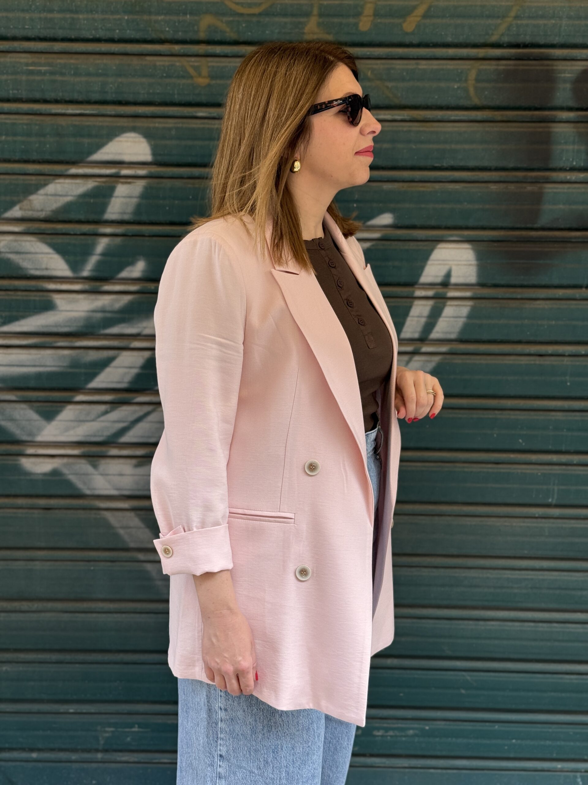 Manica a 7/8 con risvolto, spallina imbottita e collo revers.