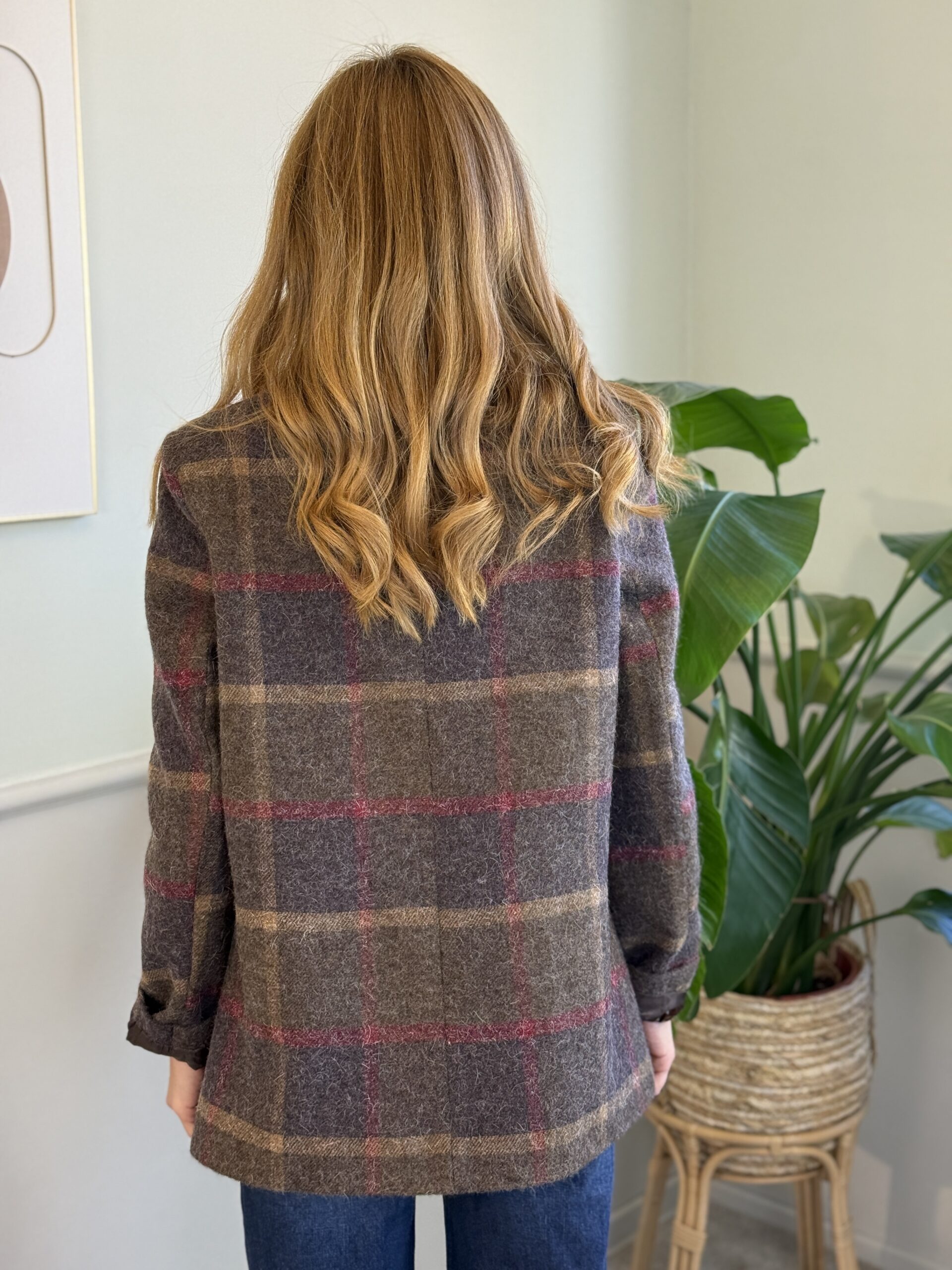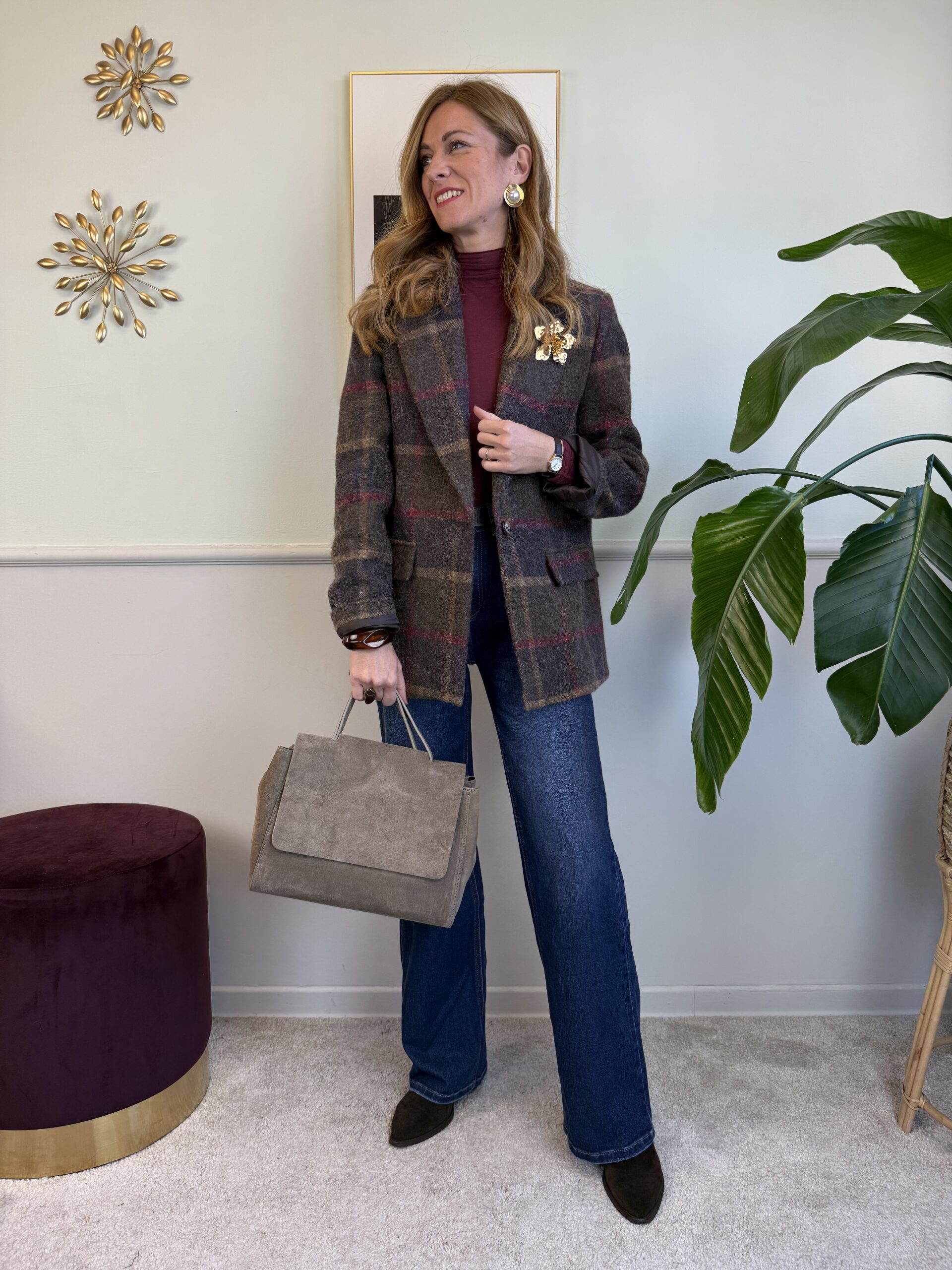 Blazer in fantasia check monopetto in tessuto misto lana caldo e morbido.