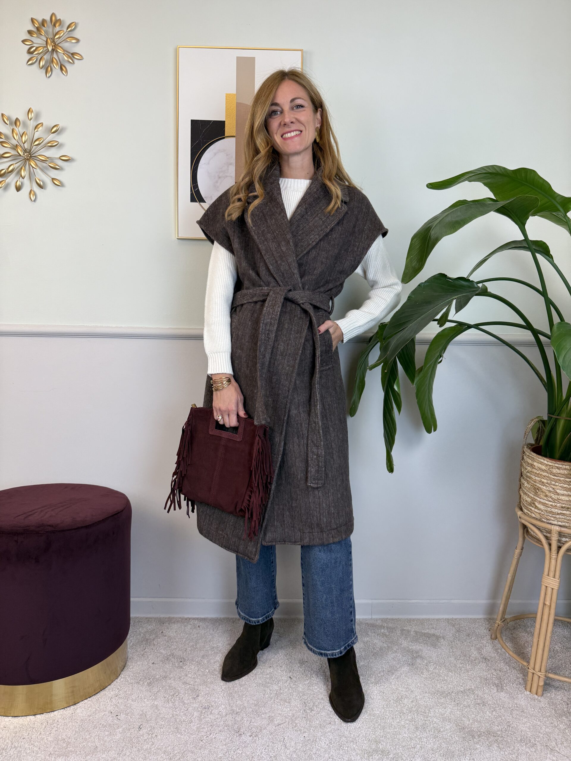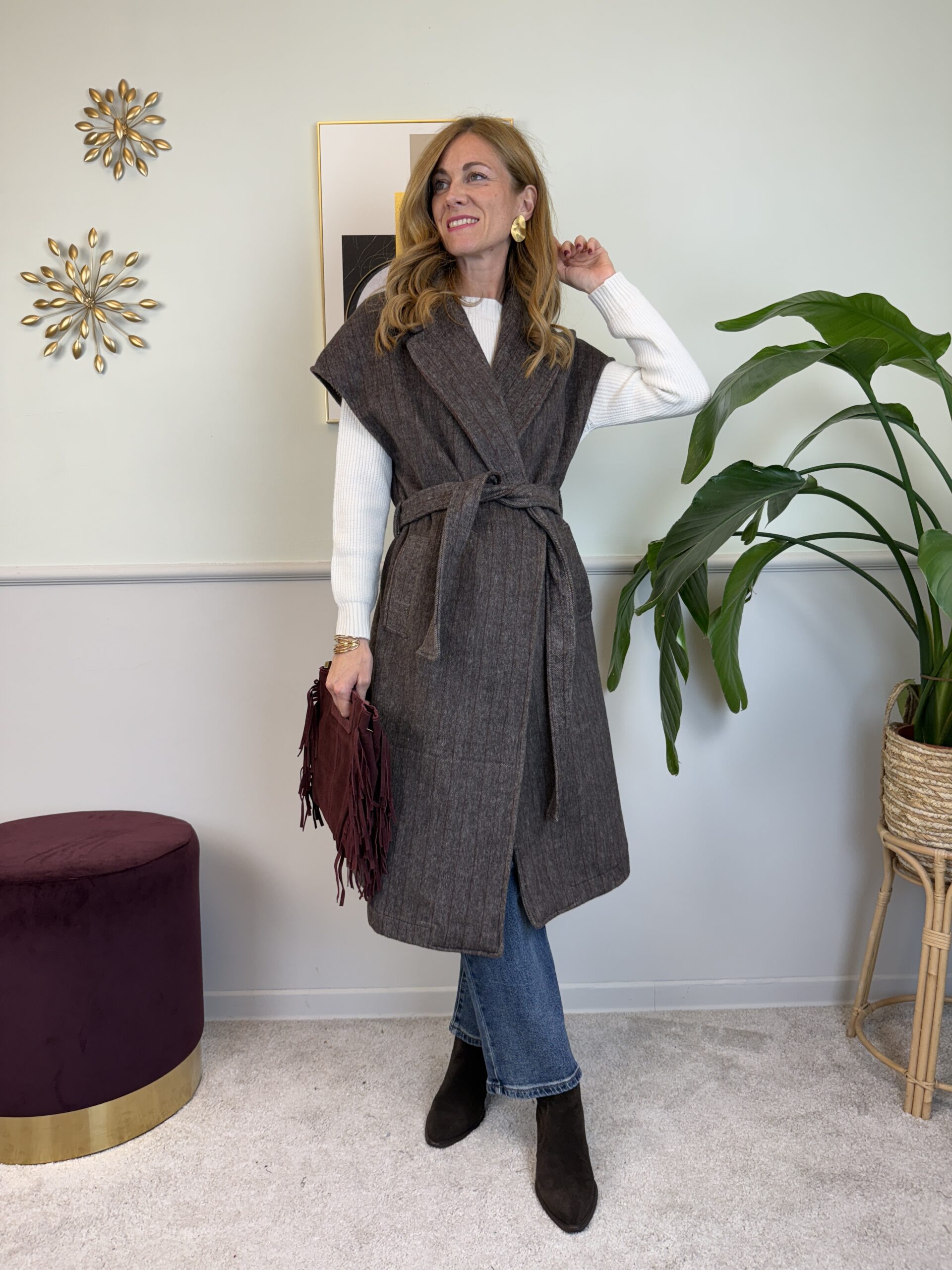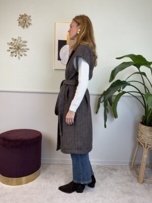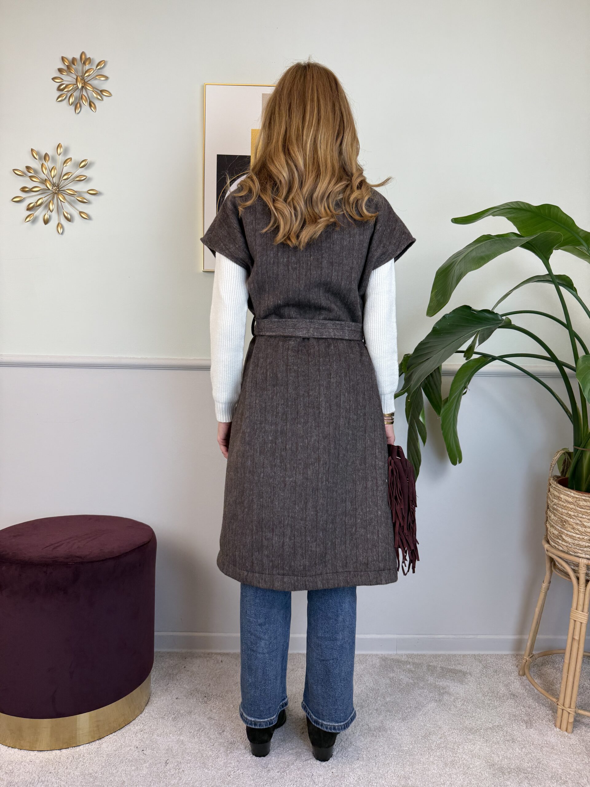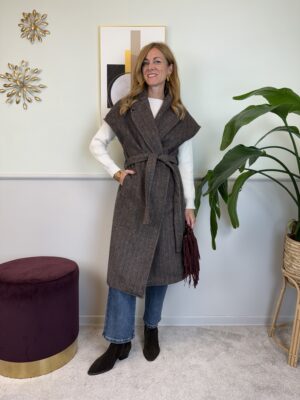 Gilet/cappotto con cintura tessuto gessato OUTLET NO CAMBIO/RESO