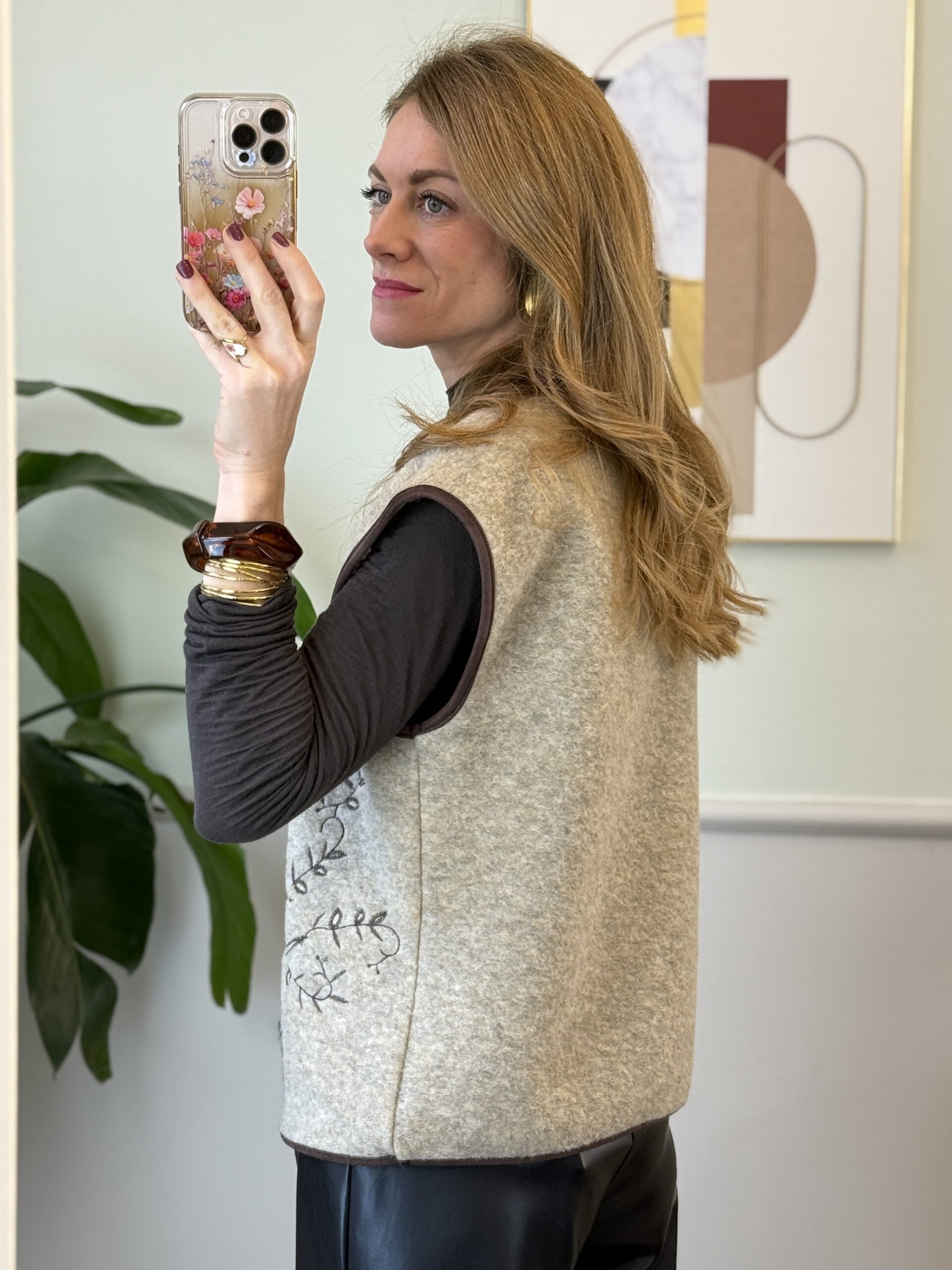 Gilet in lana cotta beige ricami moro/lurex SusyMix 257
