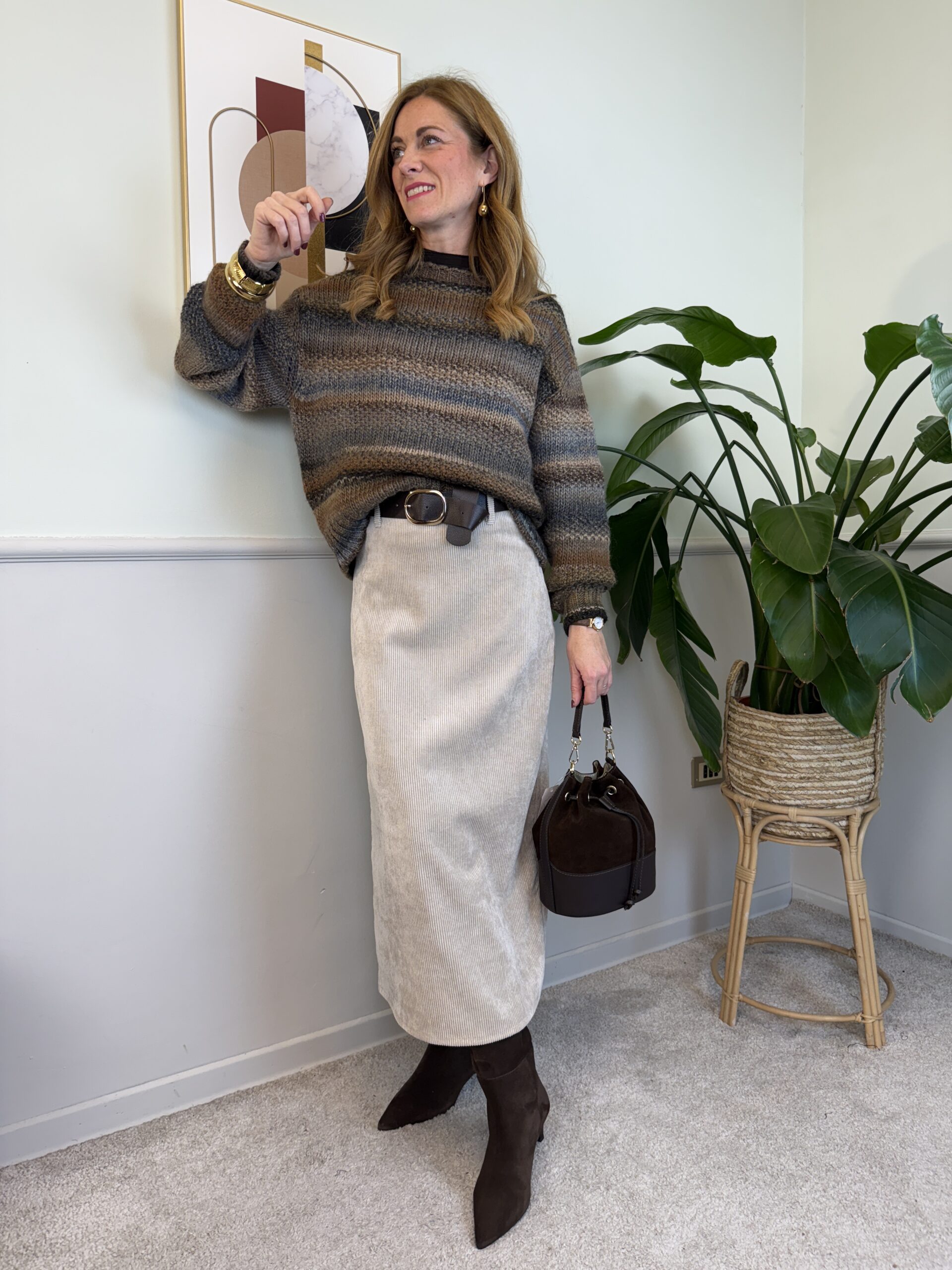 Gonna longuette in velluto a coste Panna HaveOne 638
