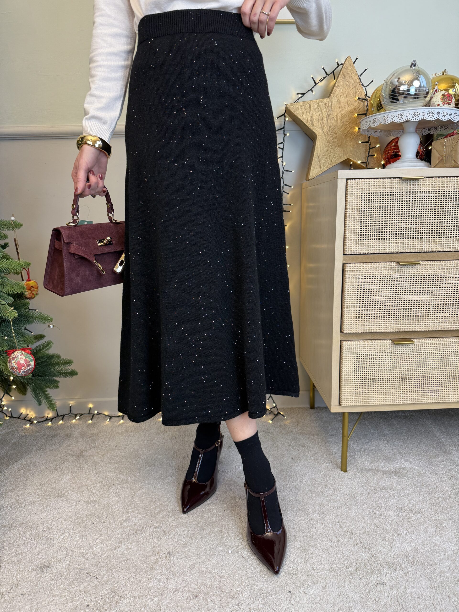 Gonna midi in maglia nera, veste da tg 38 a tg 44