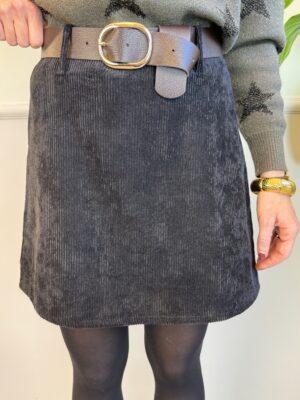 Minigonna effetto lana cotta con elastico in vita, dotata di cinturina in ecopelle.