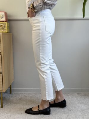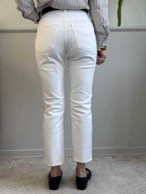 Jeans bianco a vita alta, gamba aderente e orlo a taglio vivo.