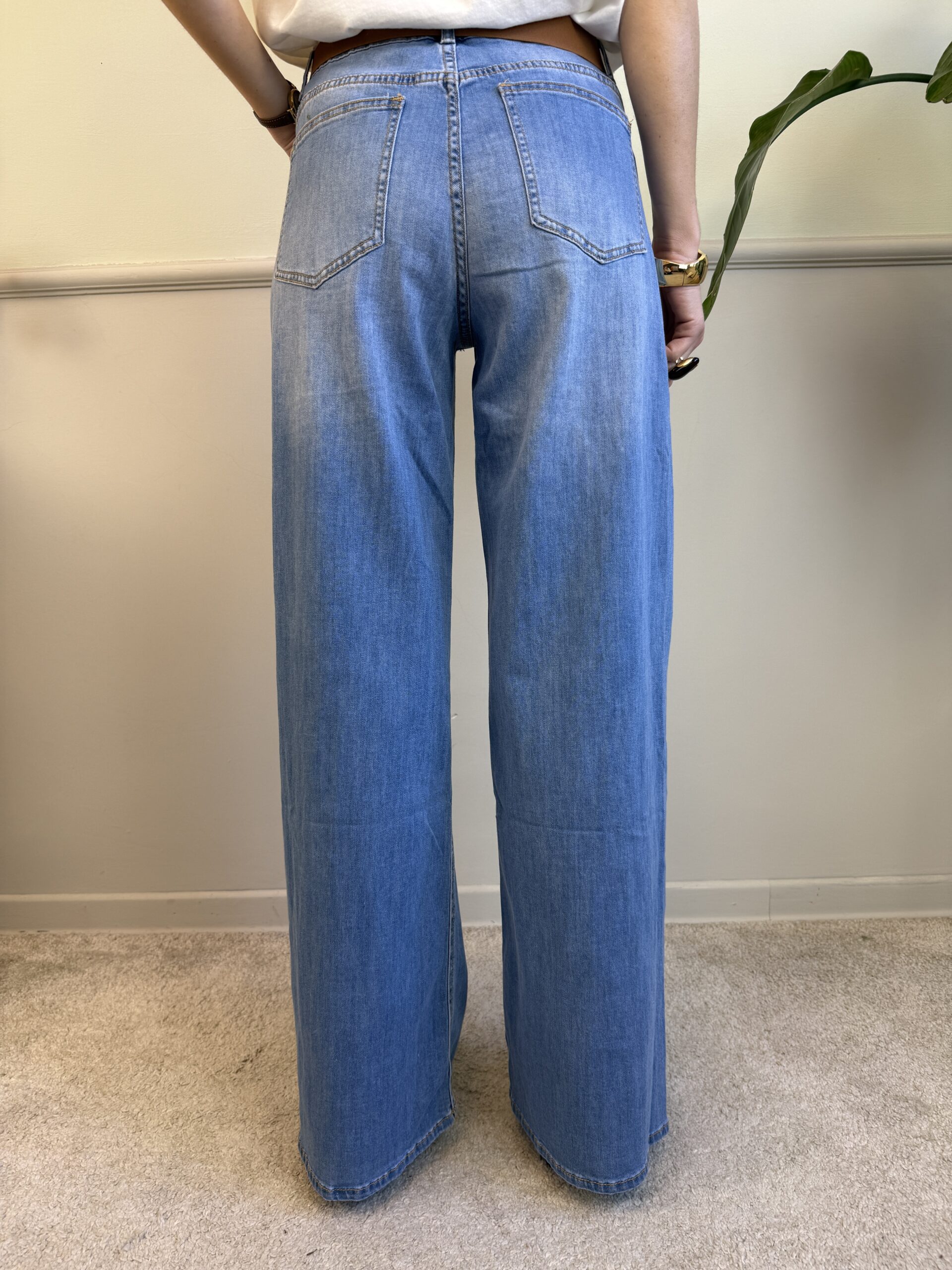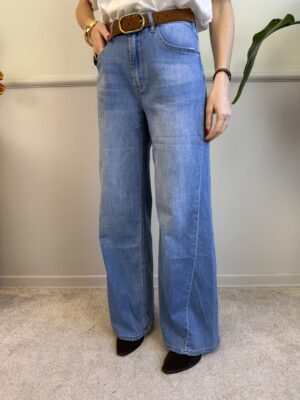 Jeans a palazzo con cucitura sbieca verticale sul davanti, vita media.