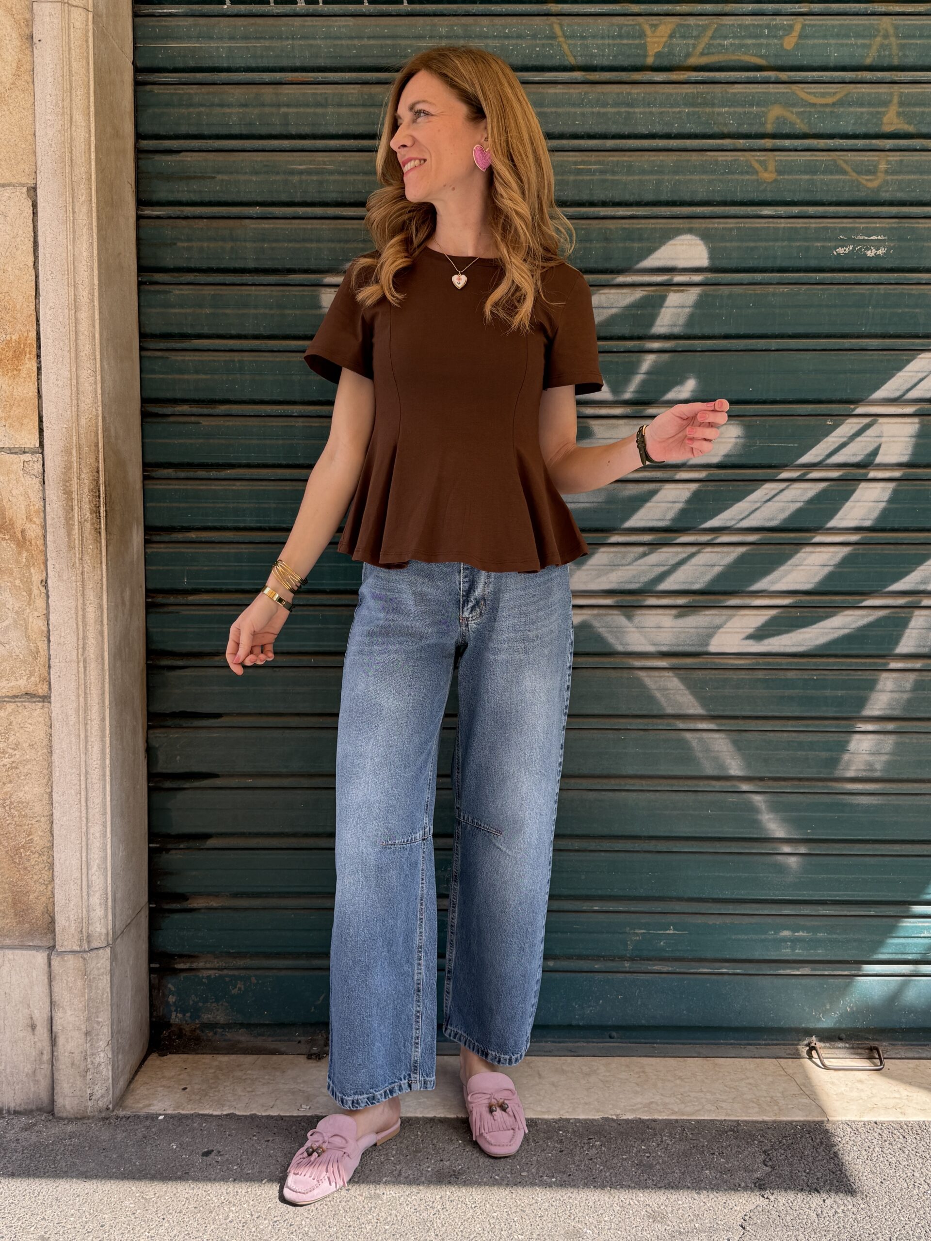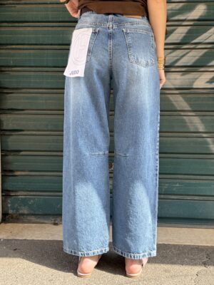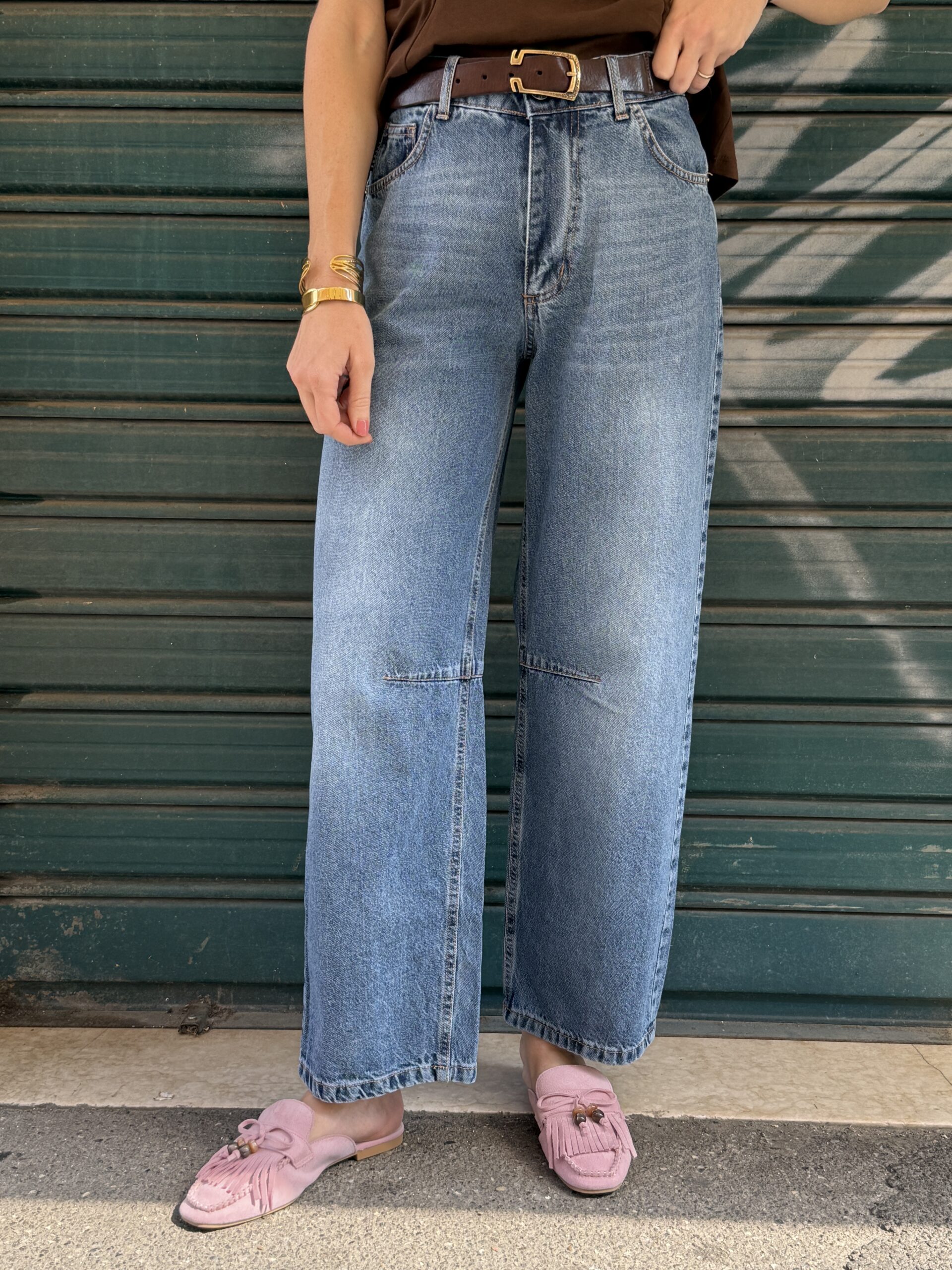 Jeans barrel non elasticizzato a vita alta e gamba ampia che si stringe al fondo.