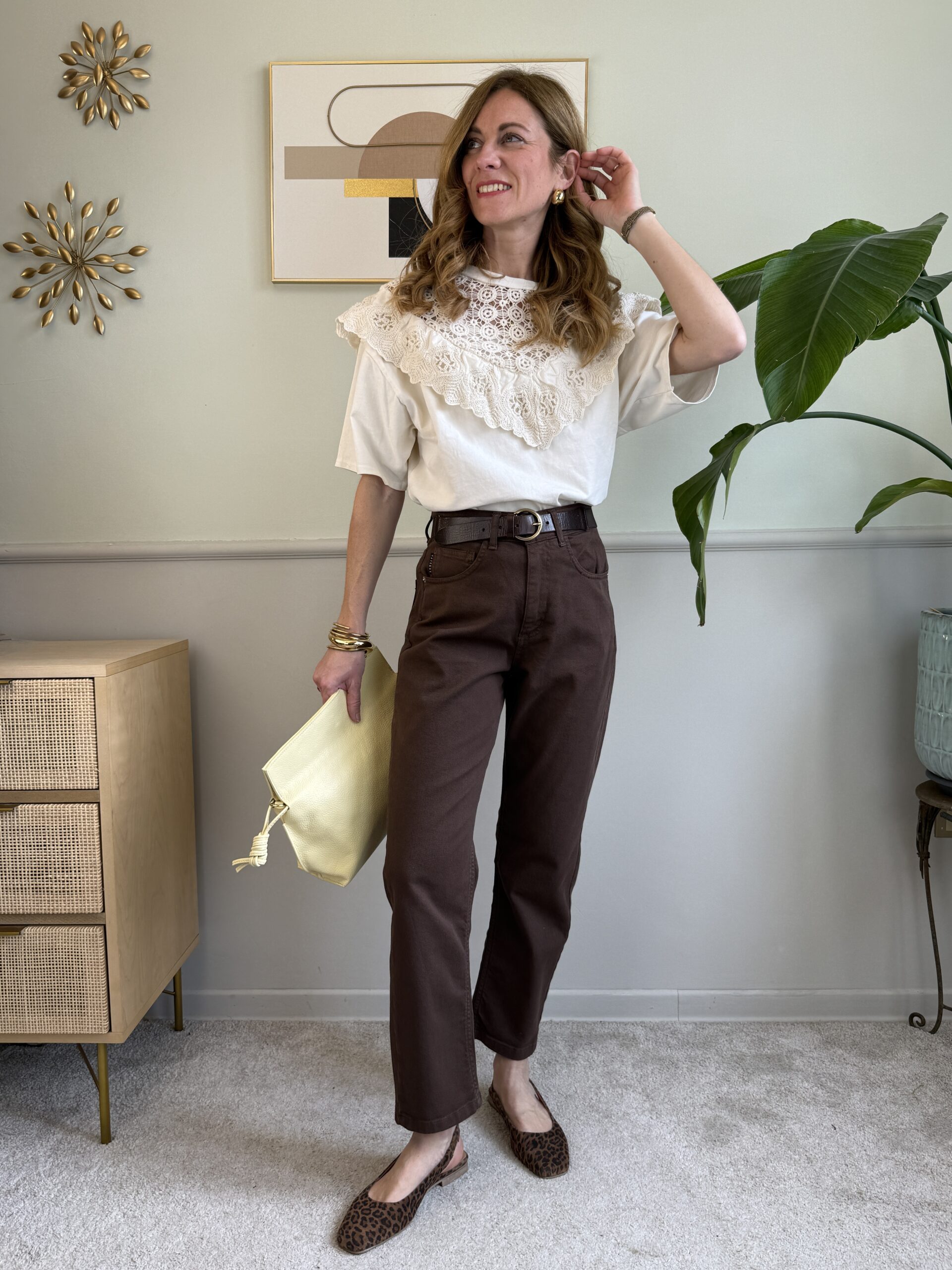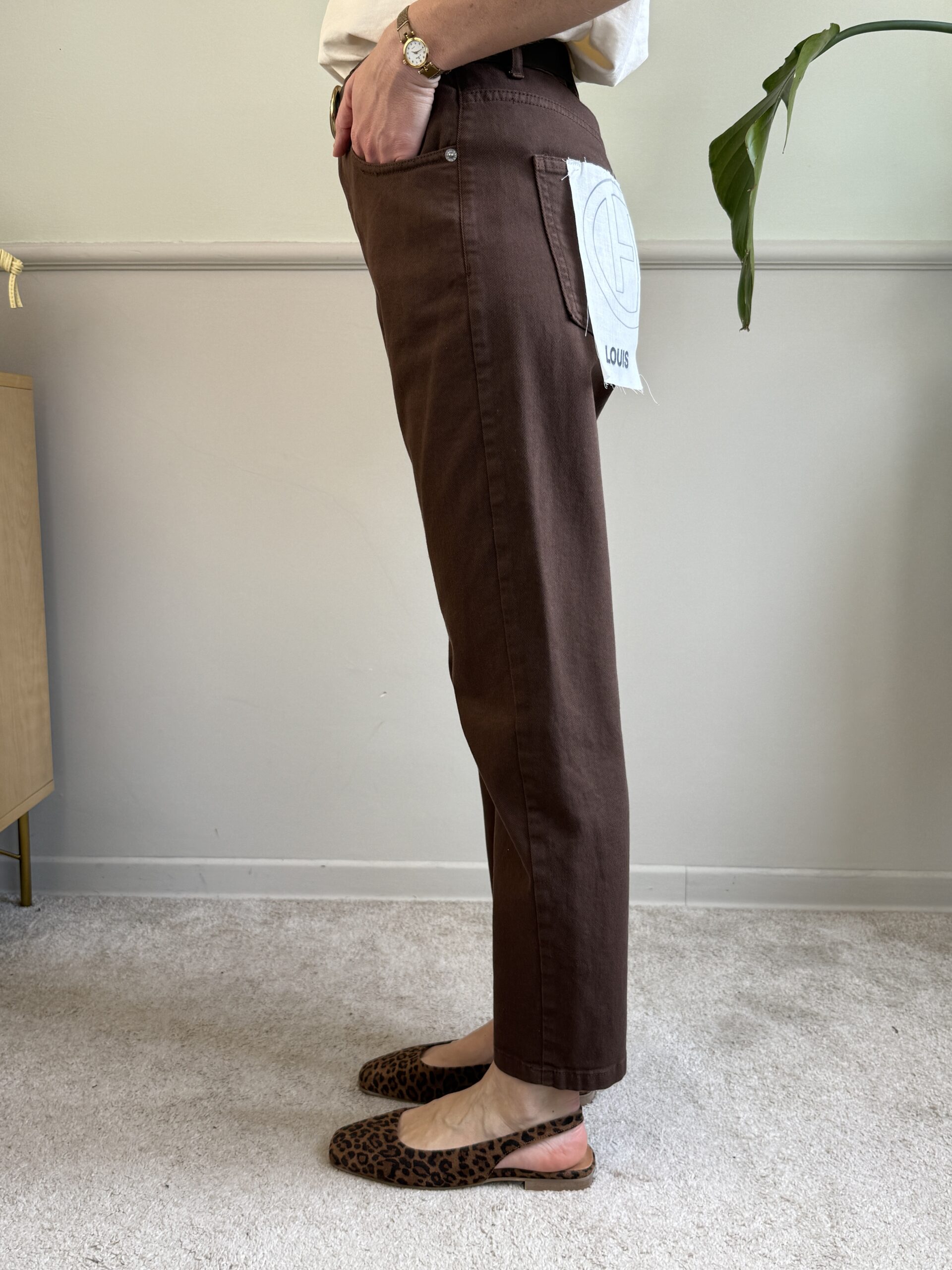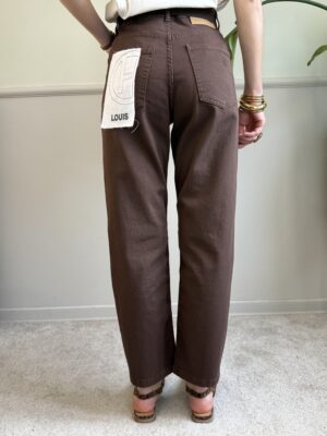 Jeans a sigaretta, vita alta, modello 5 tasche, presenta un po di morbidezza al cavallo.