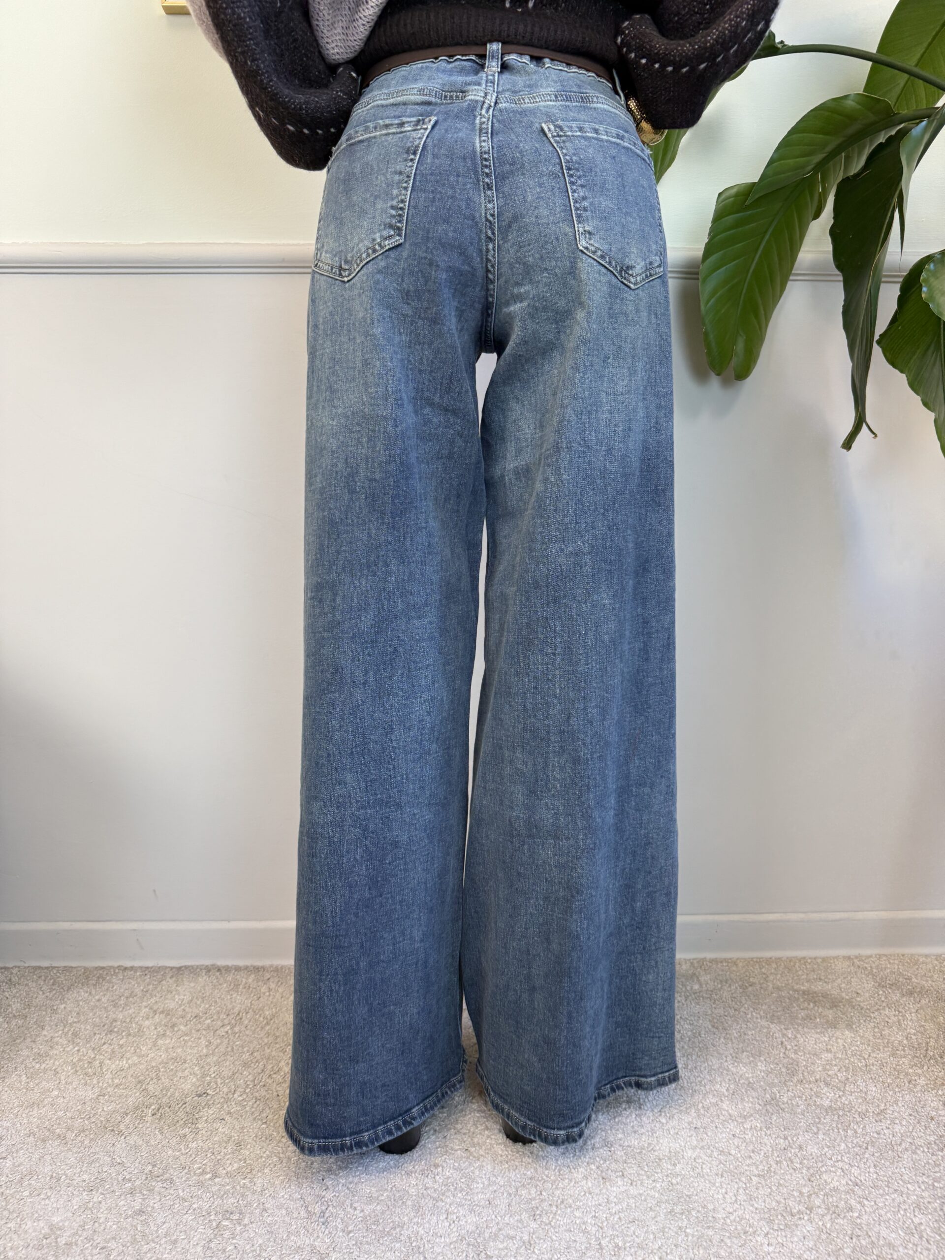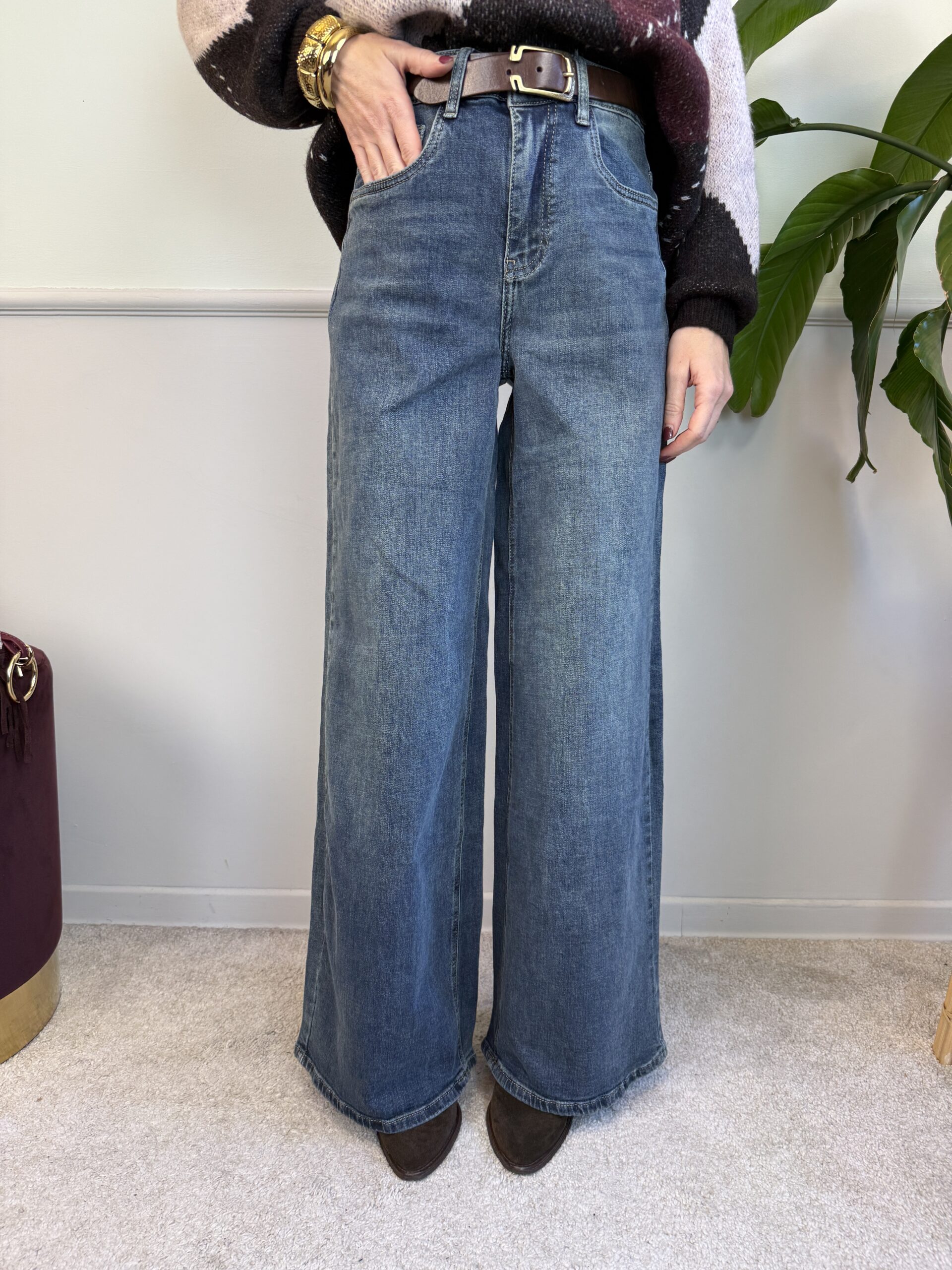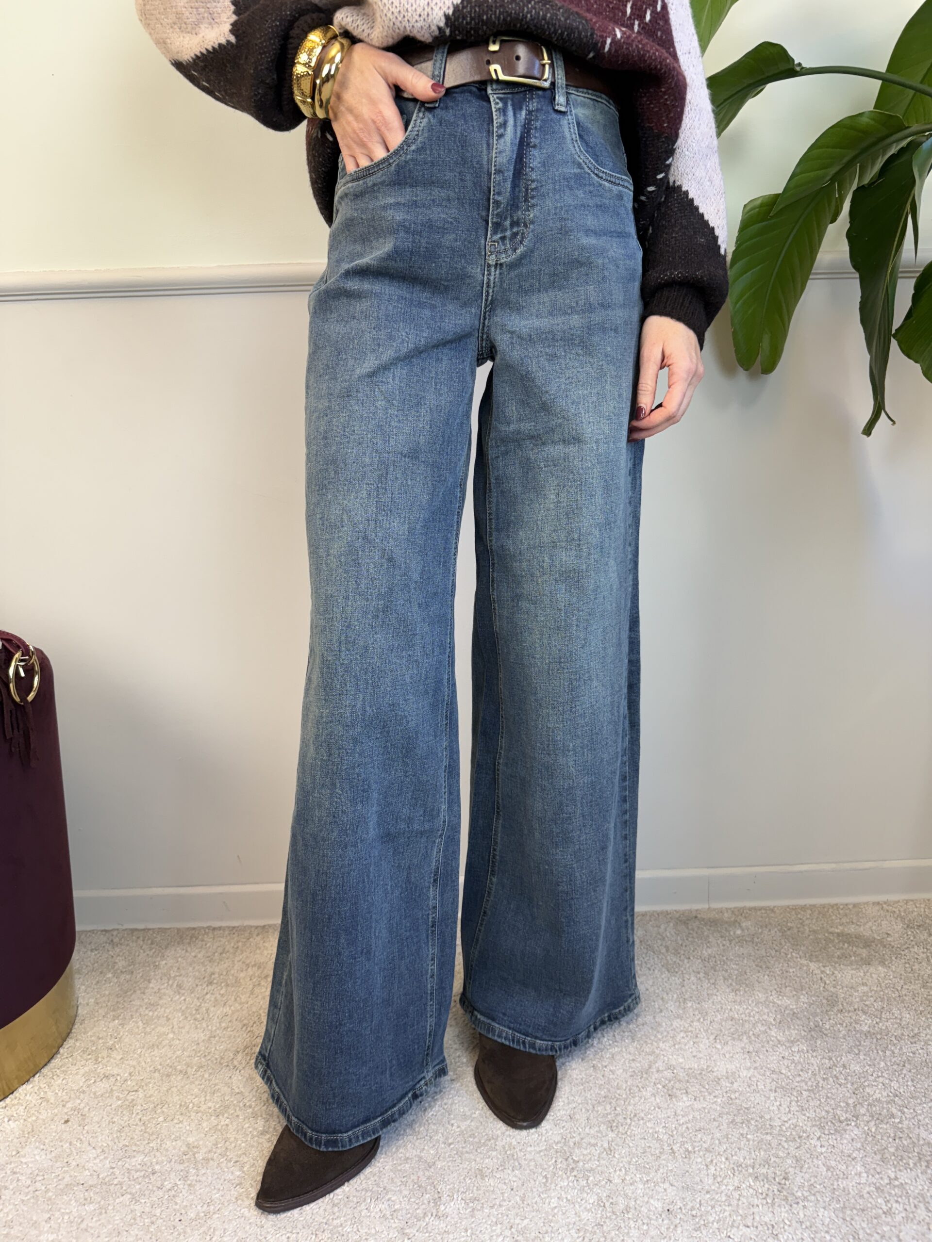 Jeans a palazzo lavaggio the, tessuto elasticizzato, vita media.