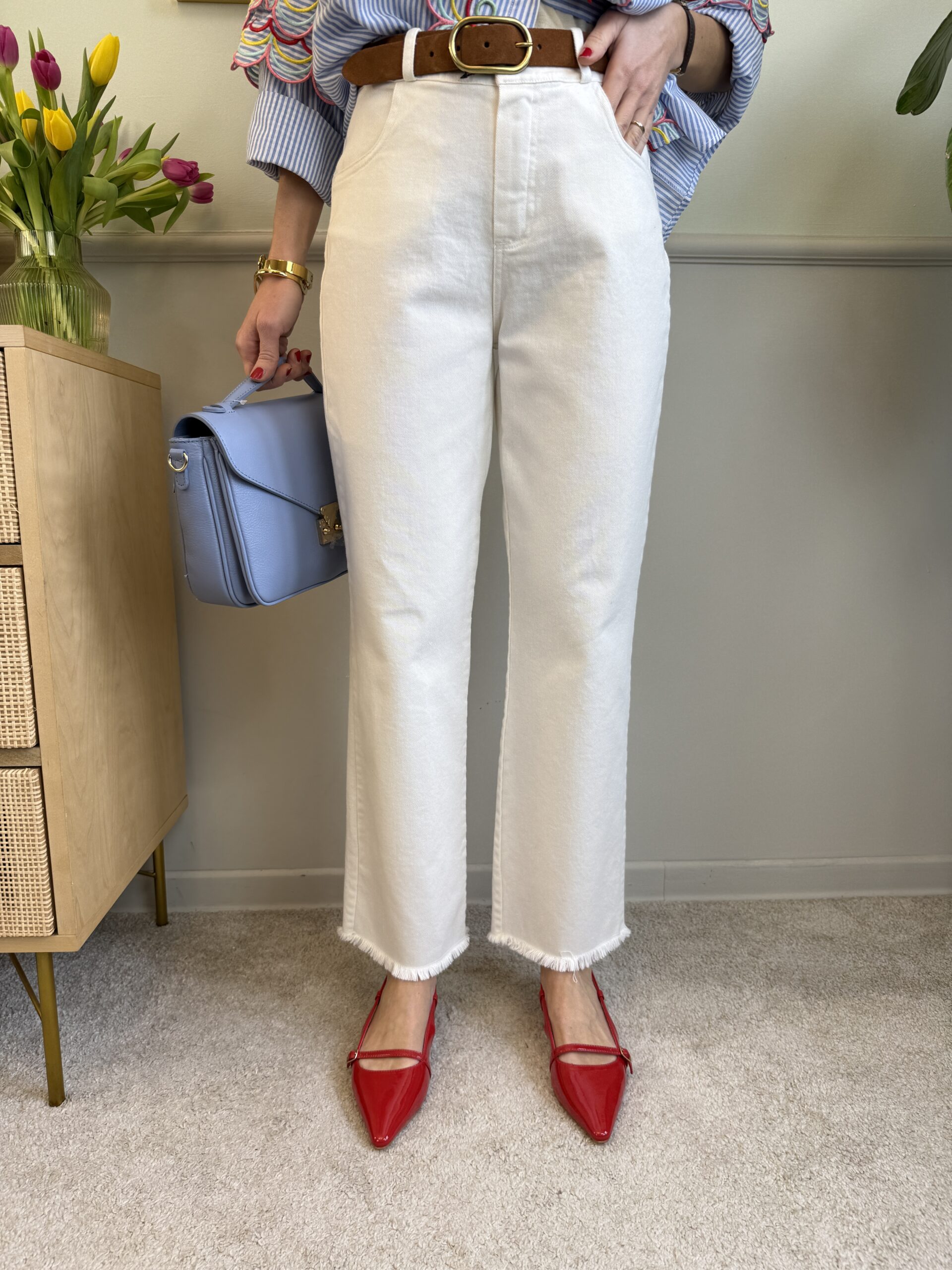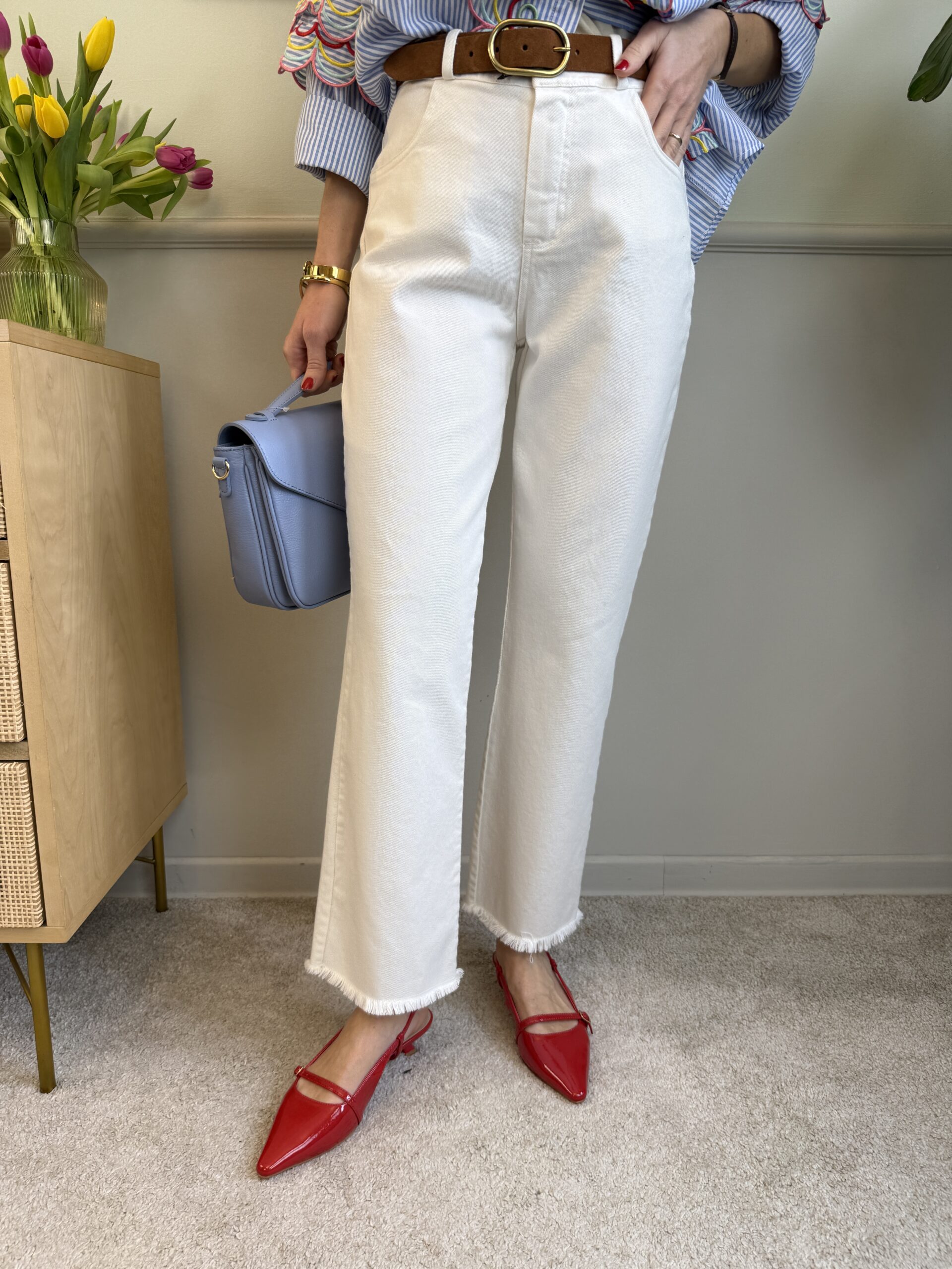 Jeans trombetta sfrangiato bianco Tensione In 65