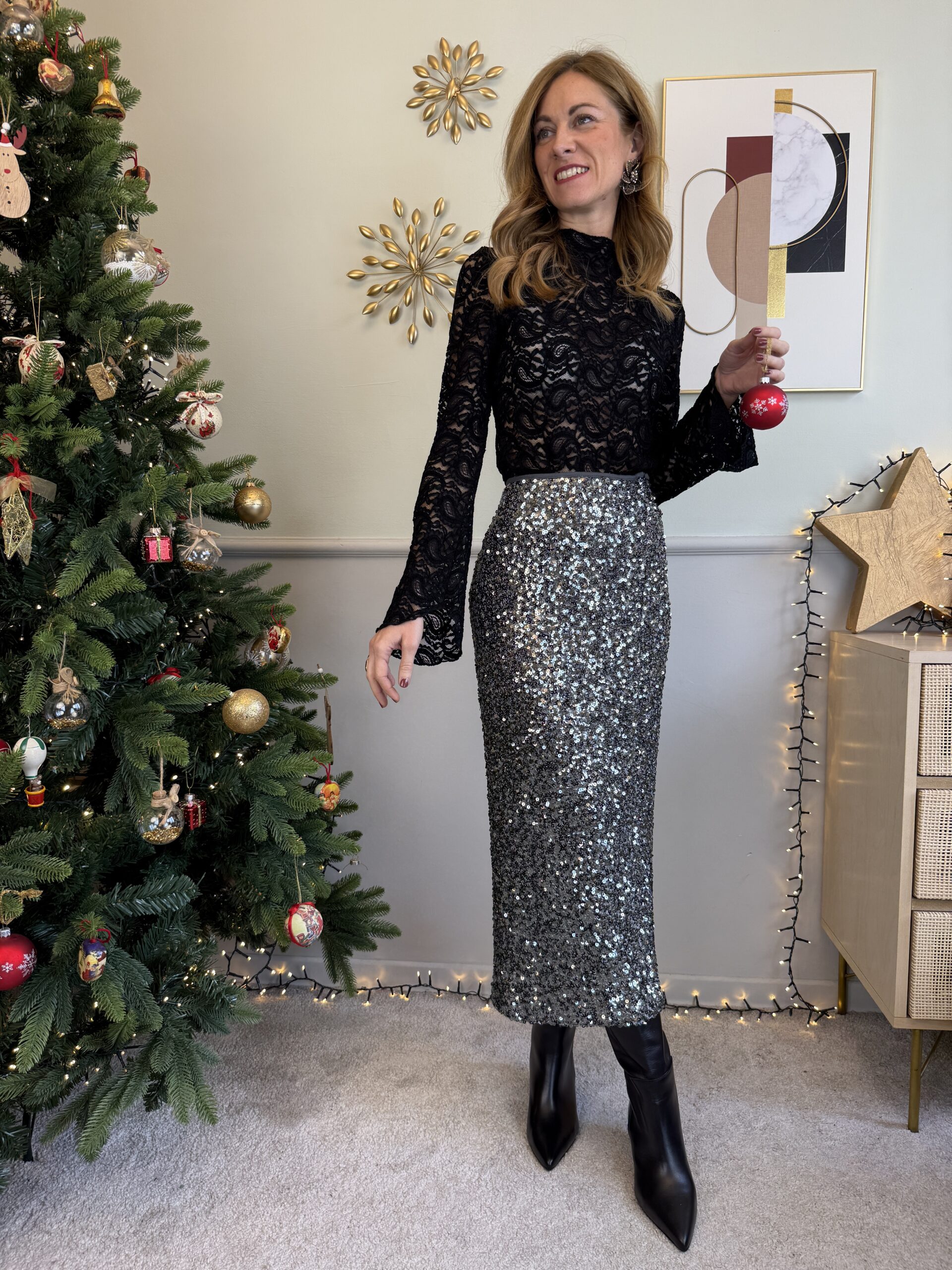 Longuette ricoperta interamente da paillettes, tessuto elasticizzato, elastico in vita posteriore, foderata.