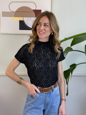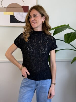 Maglia in pizzo manica corta 397 Nera